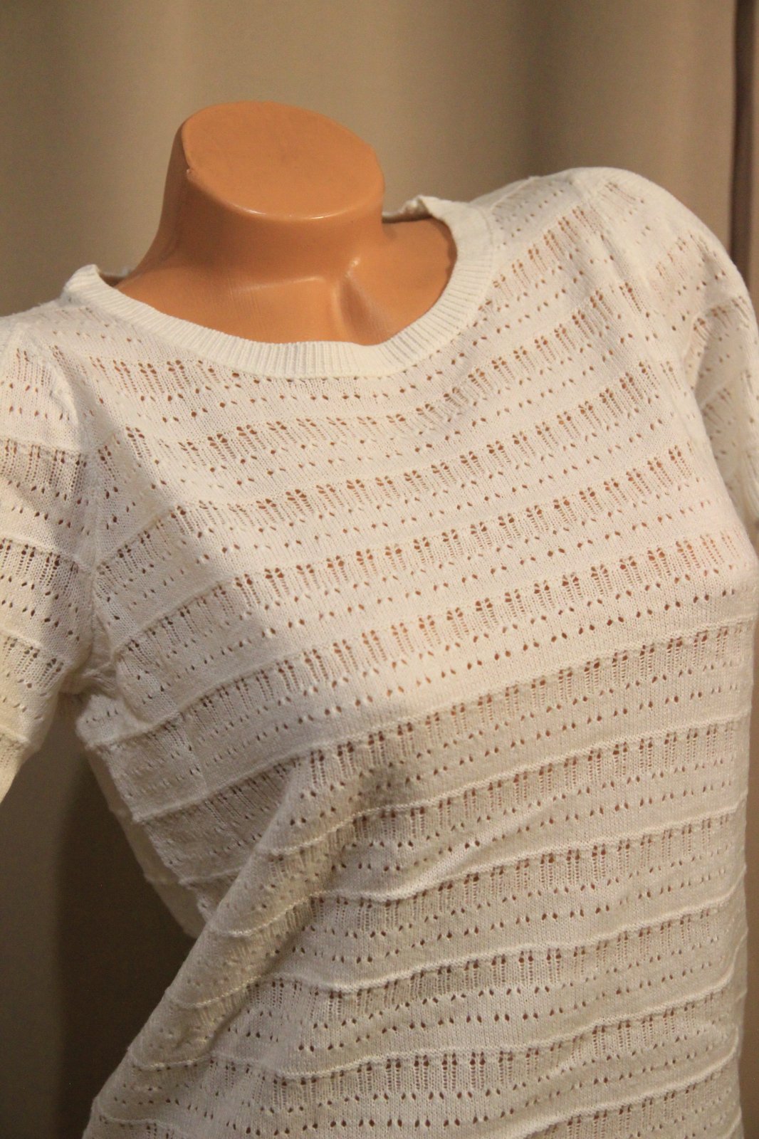Biely pletený top s krátkymi rukávmi a odhalenými ramenami, veľkosť S/M. Top stav.