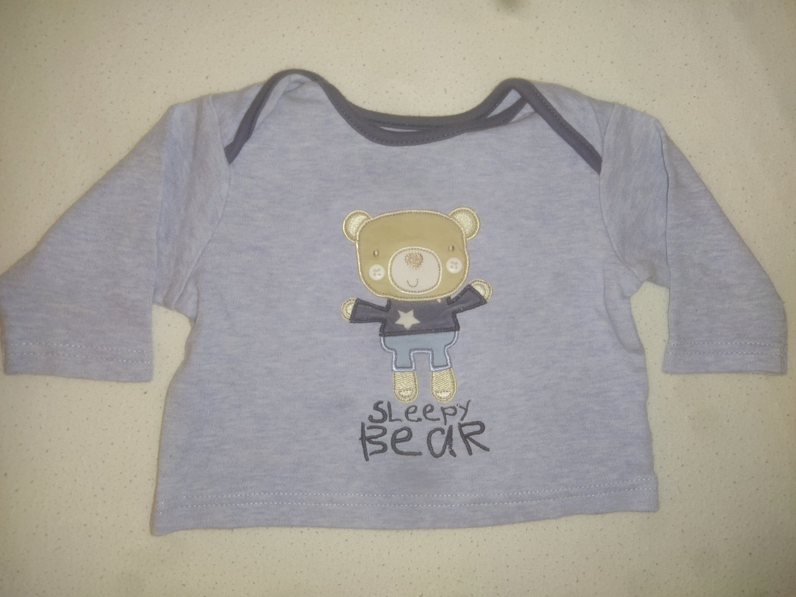 Predám detské tričko s dlhým rukávom, veľkosť 56-62. Vhodné pre 3 mesačného. Pri kúpe viacerých kusov dojčenského oblečenia možná zľava.