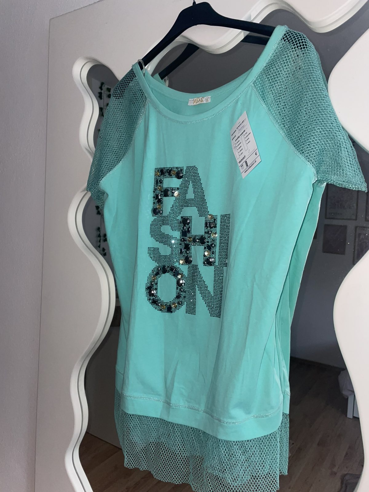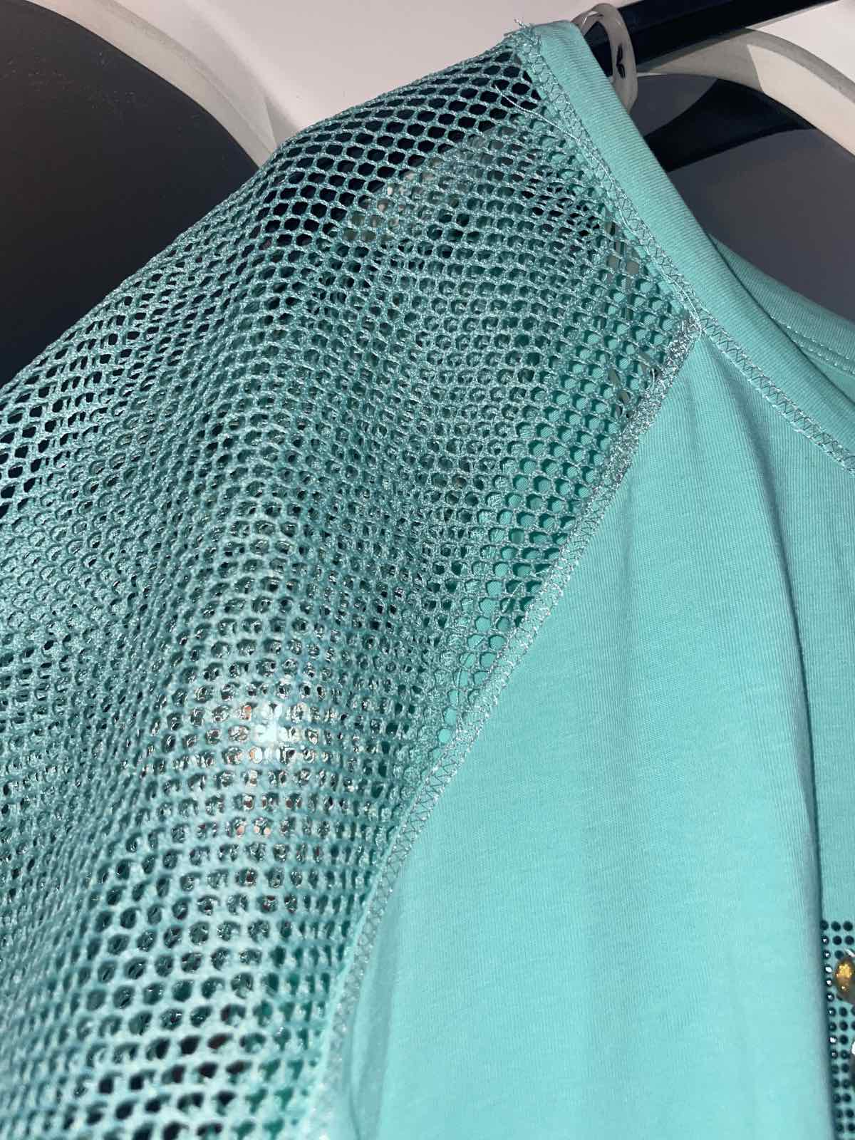 Nový s visačkou, tyrkysovo-zelený, veľkosť S, aj na M, šírka pod pazuchami 50 cm, dĺžka 67 cm