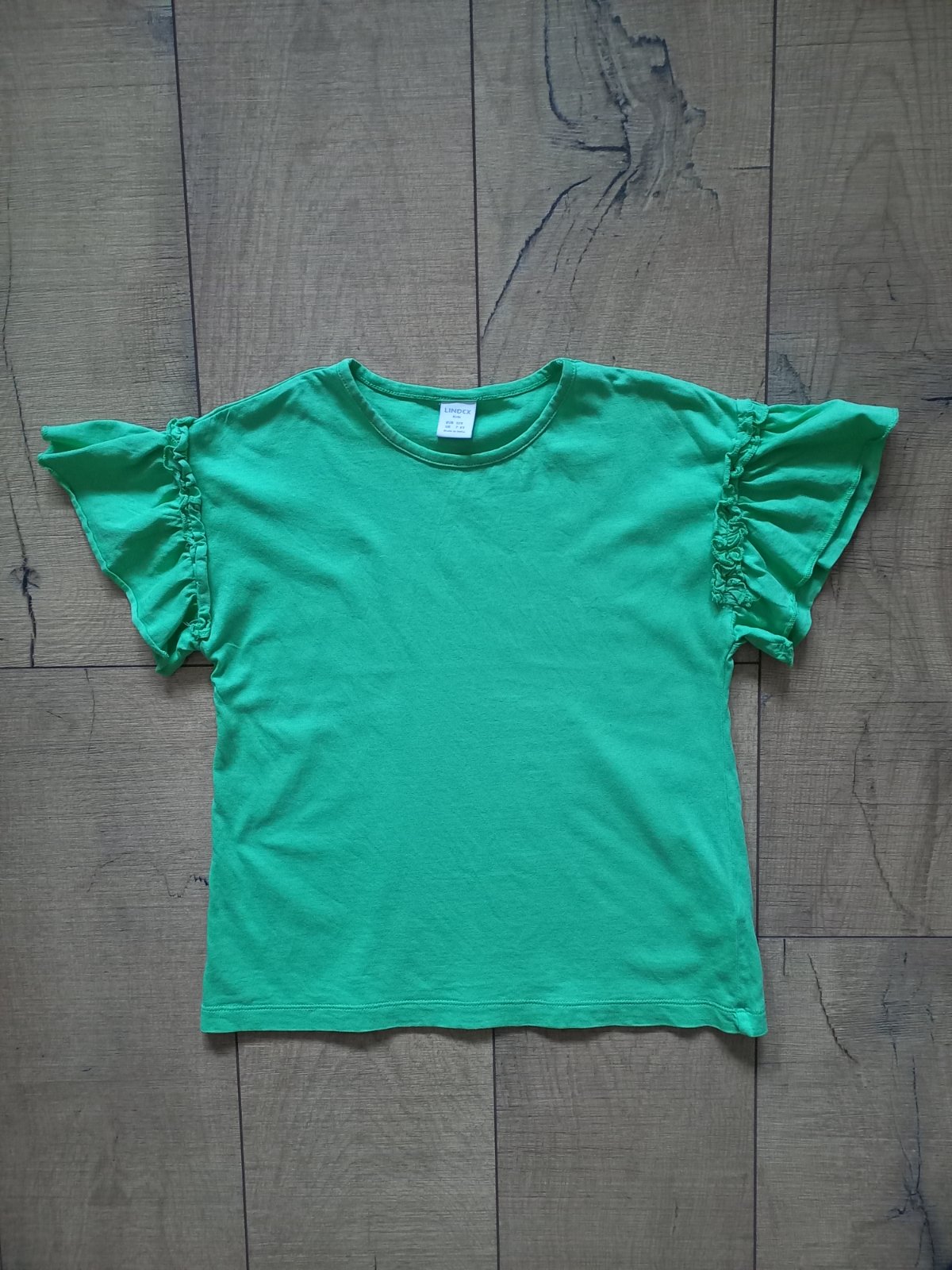Tricko s volanmi v krasnej zelenej farbe, zn. Lindex, velk. 128. Velmi pekny stav.