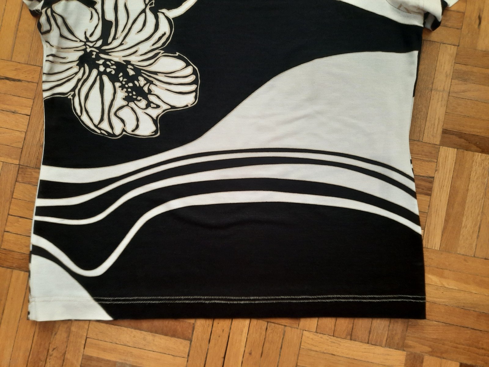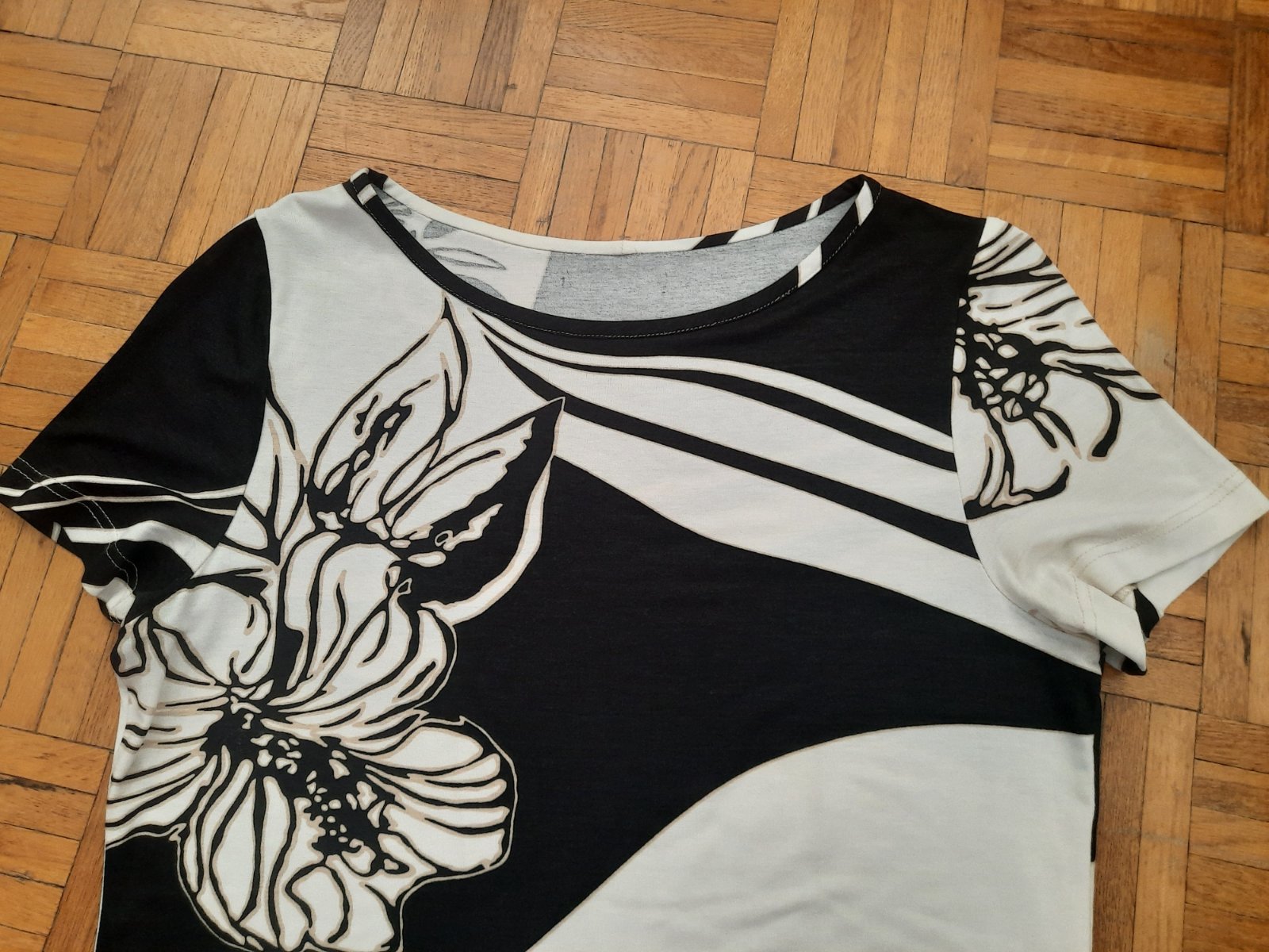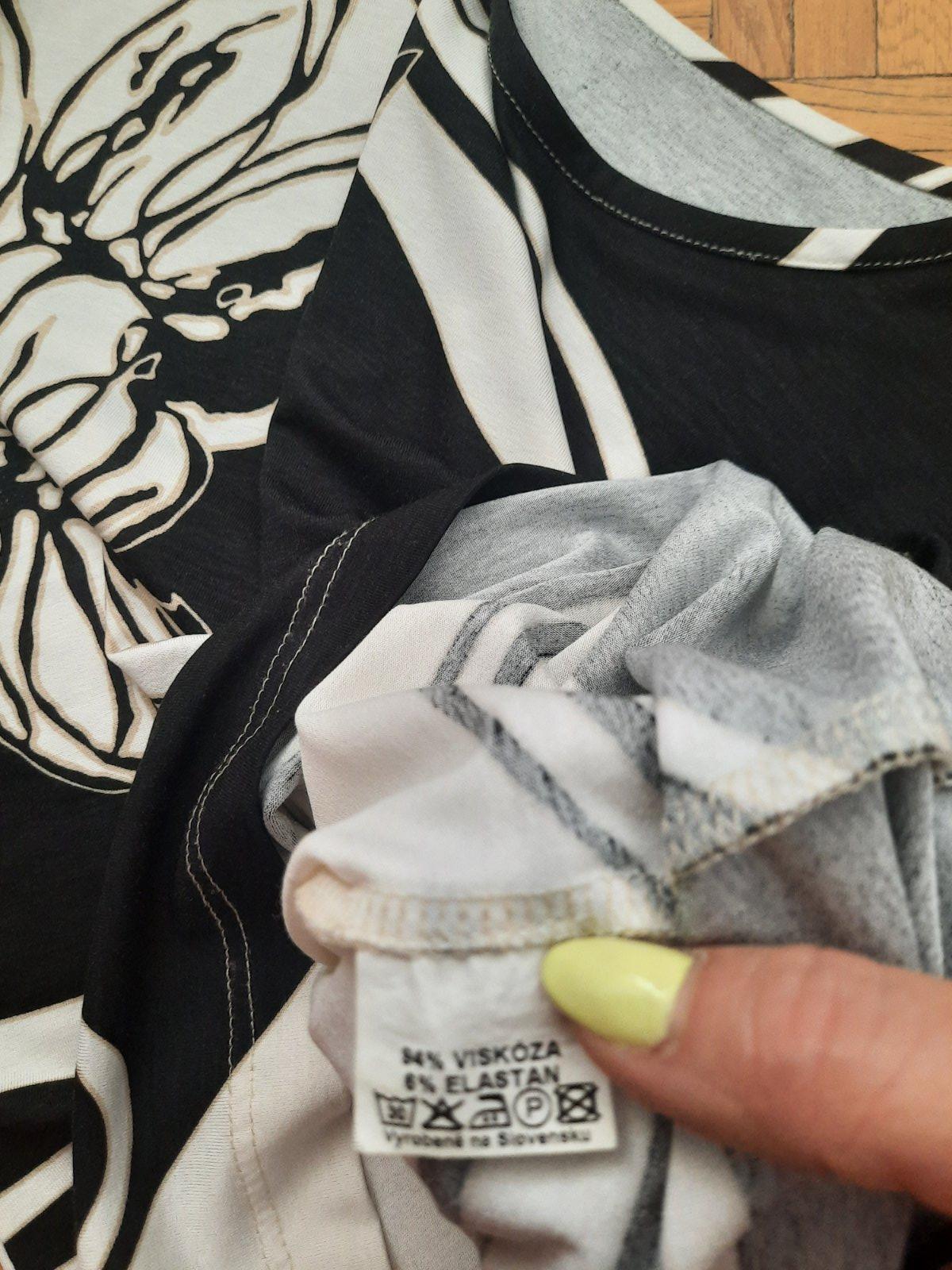 čierno-biely pásikavý top, značka H&M, veľ. L, rozmery: sirka pod pazuchami je 2x53cm, sirka cez pas je cca 2x50cm, dlzka je cca 58cm. Je to troska pruzne, material je 100perc. viskoza