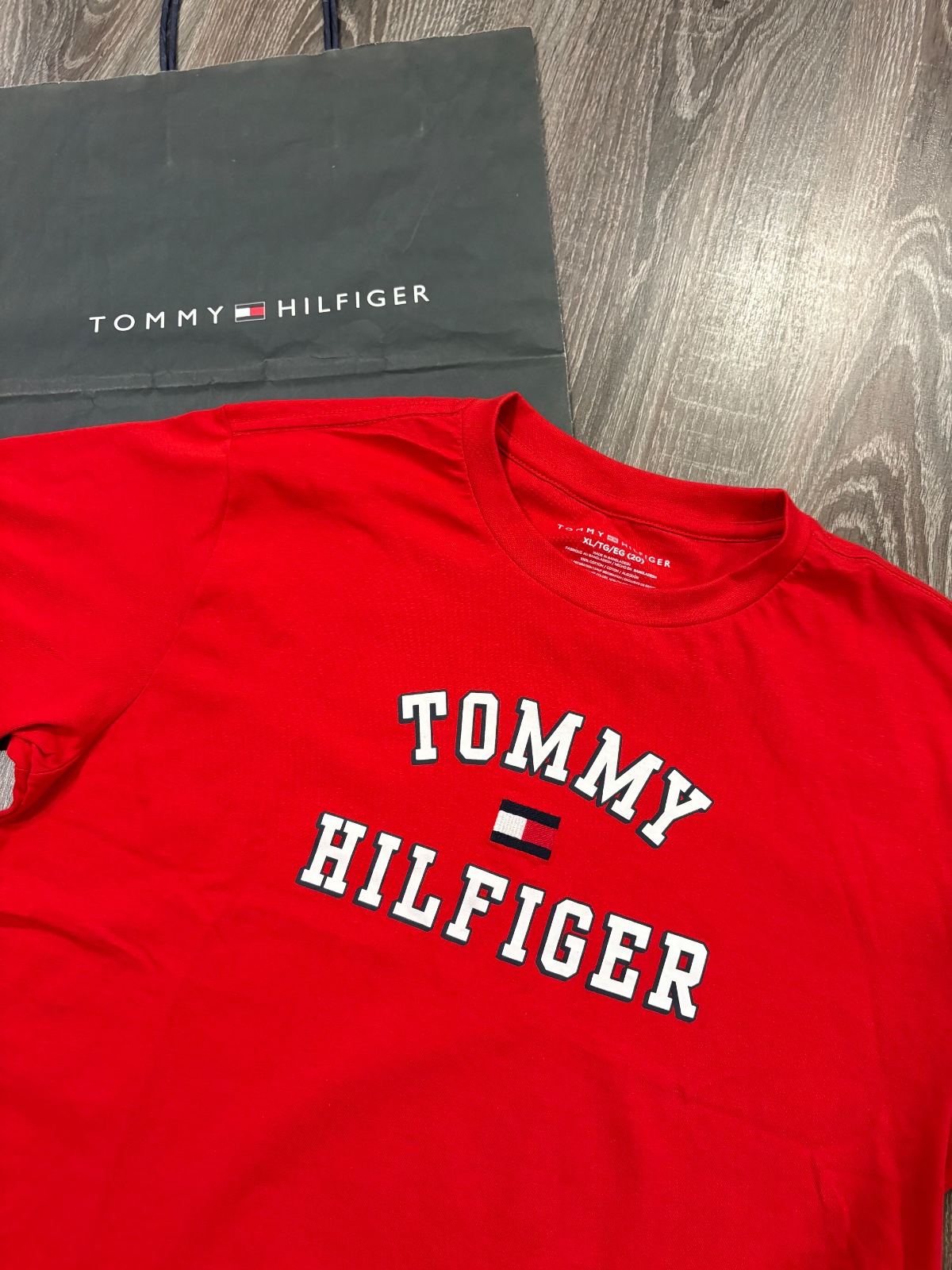 010.Tommy Hilfiger tričko vo velkosti M alebo chlapcenske na 20rokov,krasna cervena farba,dlzka je 68cm a sirka v podpazusi je od 52x2cm do 63x2cm