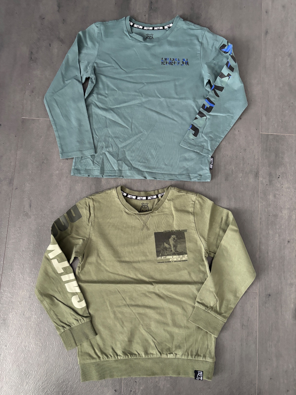 Dvojbalenie triciek, vyborny stav, kludne vhodne do skolky/skoly. Velkost uvedena 122/128 ale sedia skor na 128. Kupene na aboutyou. Cena spolu.