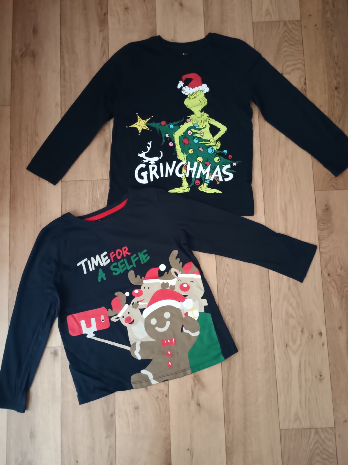 Vianočné tričká v bezchybnom stave, veľkosť 128 ale zodpovedajú 122.
