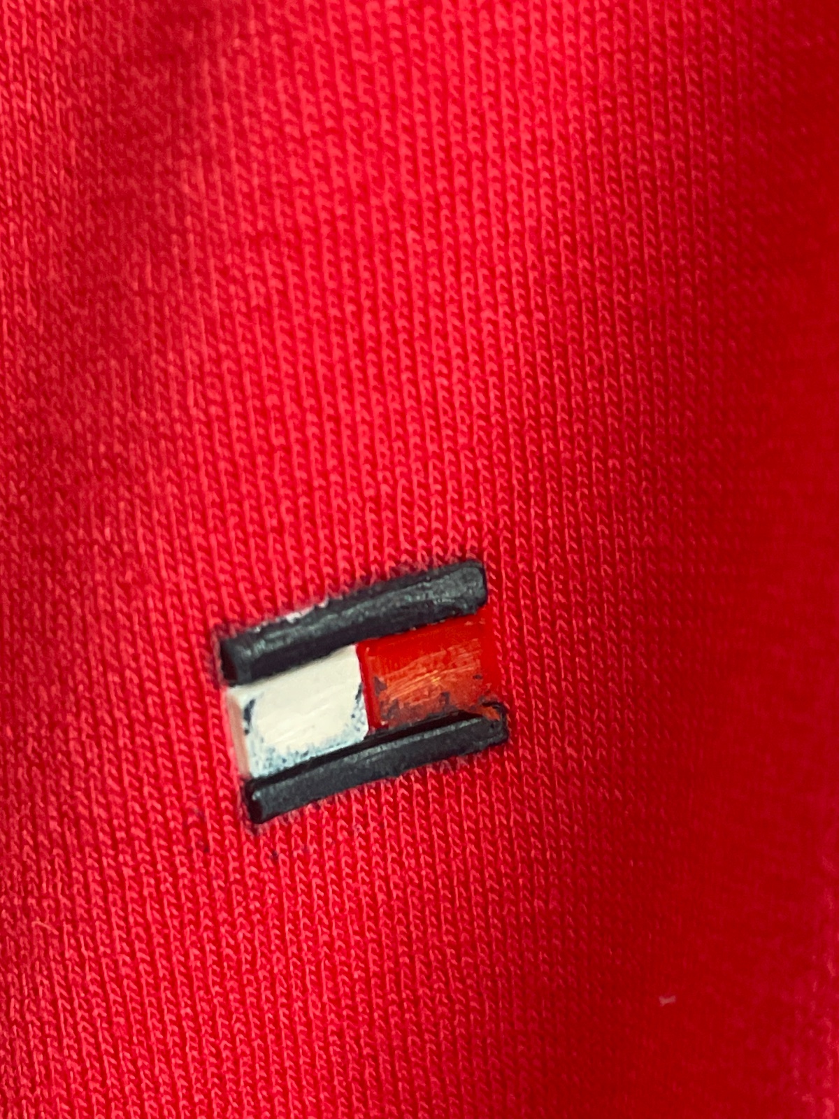 Super stav, pranie vidieť akurát na logu - pozri foto - pri nosení to nie je až tak vidieť, skôr zblízka. Neviem na 100%, či je to originál - na štítku je Made in Turkey. Materiál je kvalitný, bez žmolkov, 92% viskóza, 8% elastan.