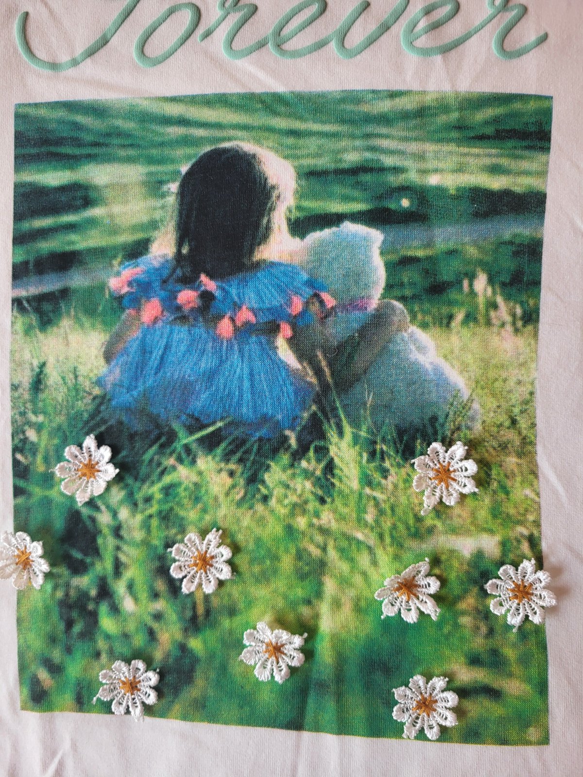 Predám nádherné tricko. Veľmi jemný mäkký materiál. Dcéra ho mala rada. V super stave krásna aplikácia 3d kvietky, volanijy na rukávoch.