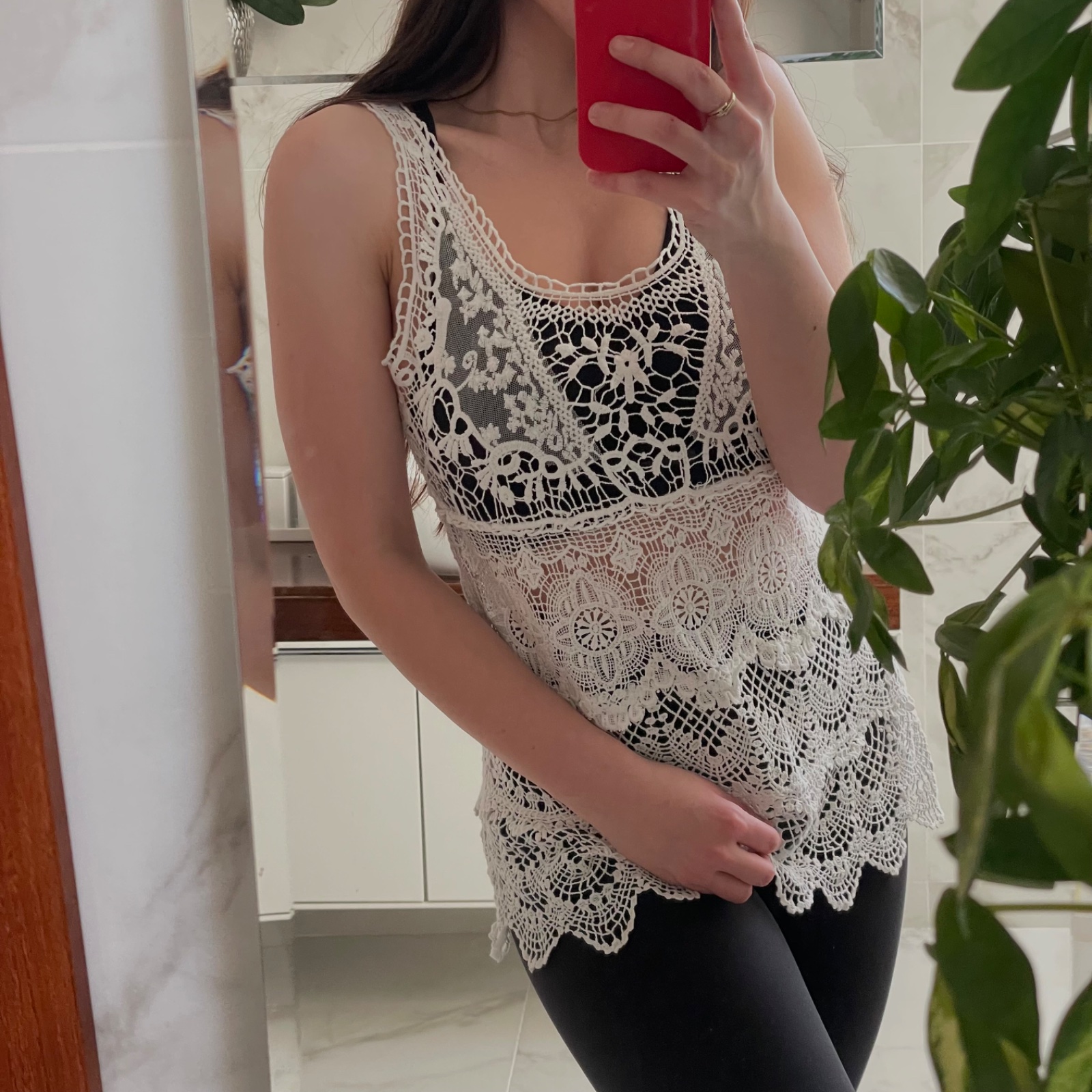 Jemný čipkovaný top značky Grey Stone v krémovo-bielej farbe. Bohato zdobená čipka s krásnym vzorom pôsobí veľmi žensky a elegantne. Strih je mierne predĺžený, takže top funguje aj ako ľahká tunika.