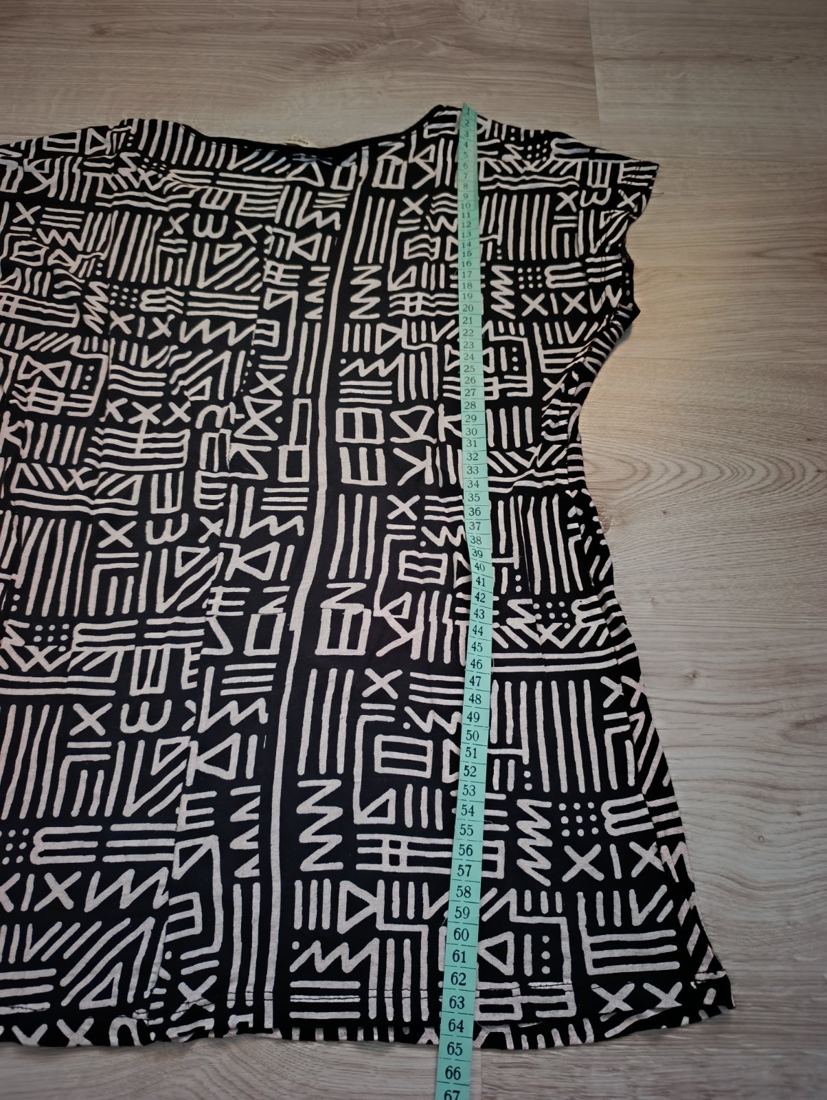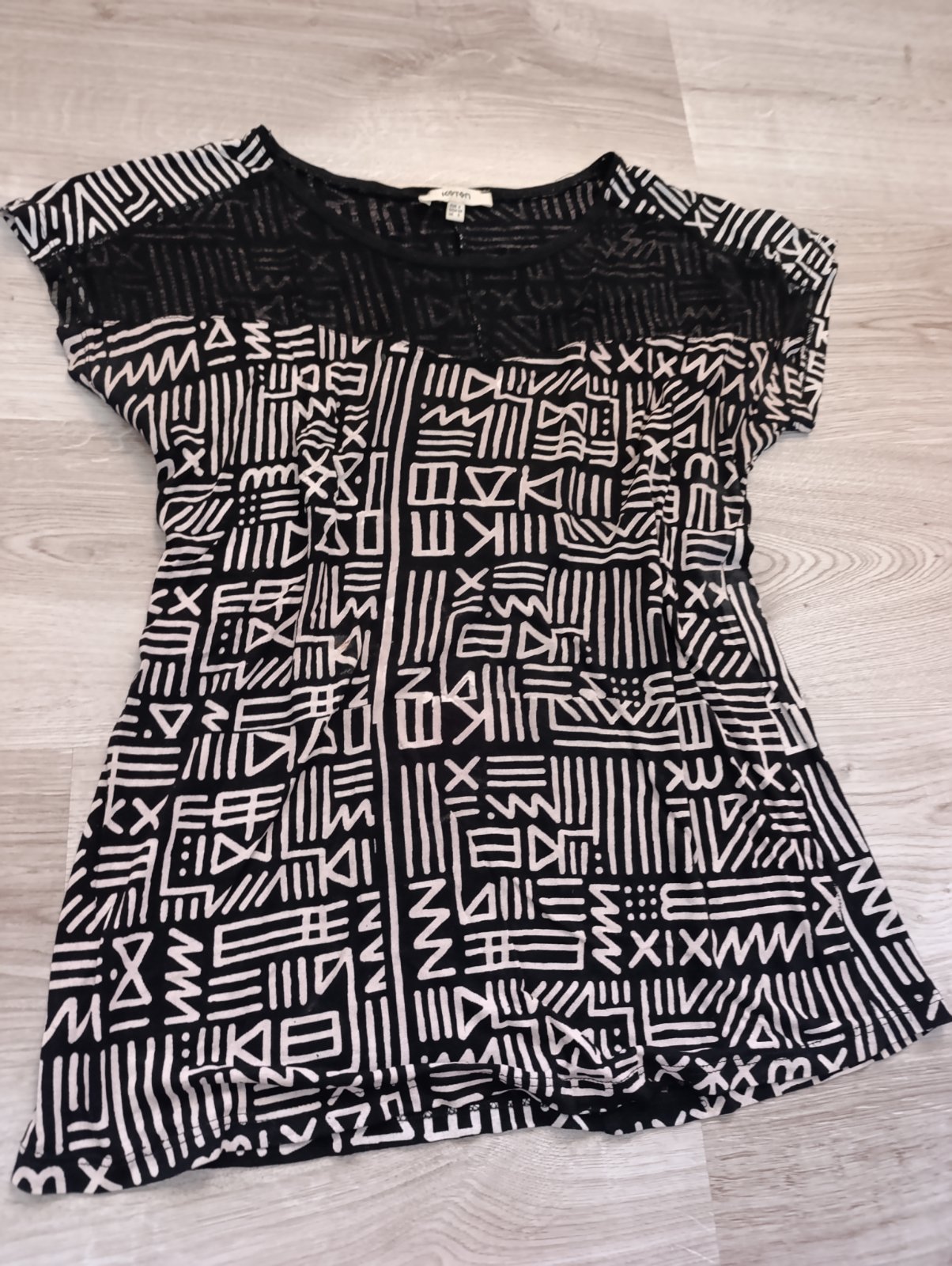 Vzorované tričko, v dekolte má čiernu sieťku. Sedí aj na veľkosť M.