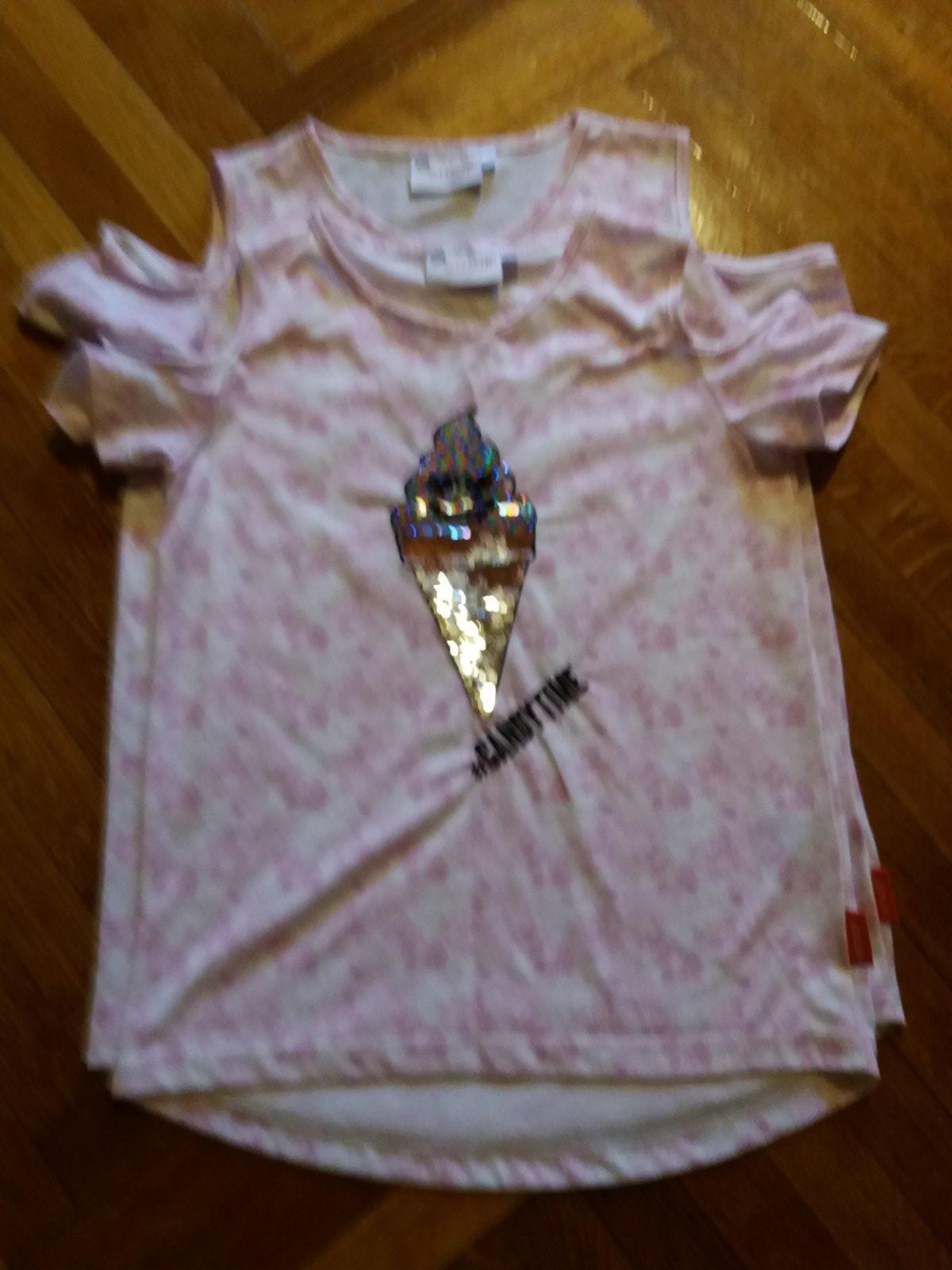 Predam minimalne nosene tricka znacky Emoji s pretacacim obrazkom. Velkost 146-152 Obvod hrudnika 74 cm, dlzka tricka 52 cm, velkost 158-164 obvod hrudnika 80, dlzka tricka 57 cm. Cena spolu 9 EUR, jednotlivo 5. cena + postovne.