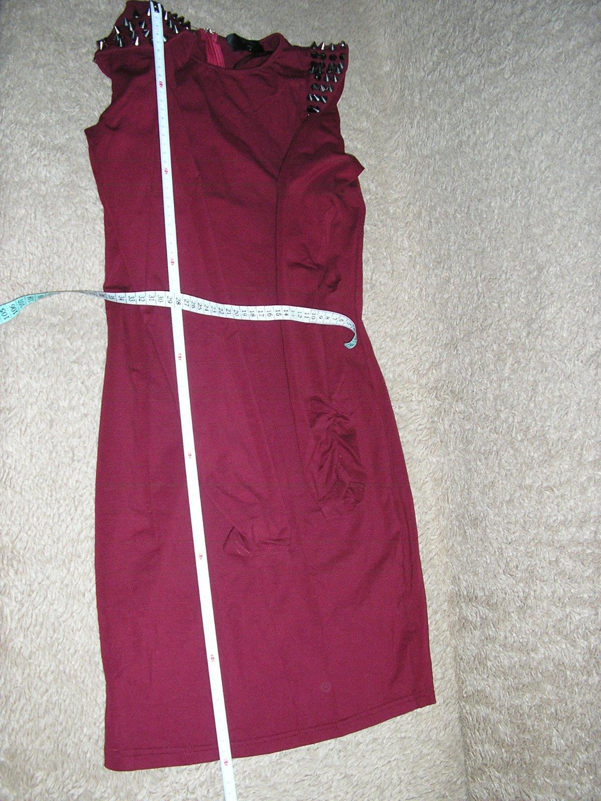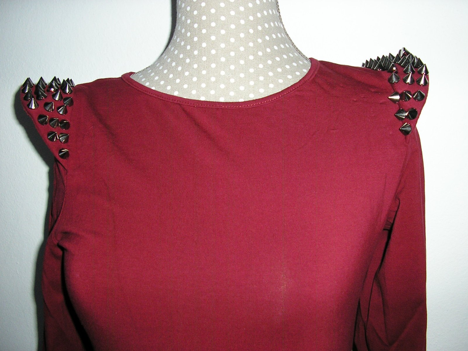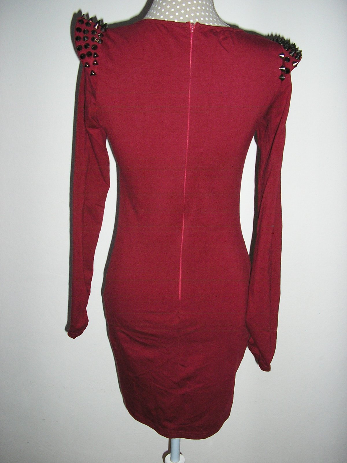 Bordová tunika s dl. rukávom na spodku mierne nazbierané. Okrúhly výstrih, vzadu skytý zips. Na ramene sú tzv. výložky.