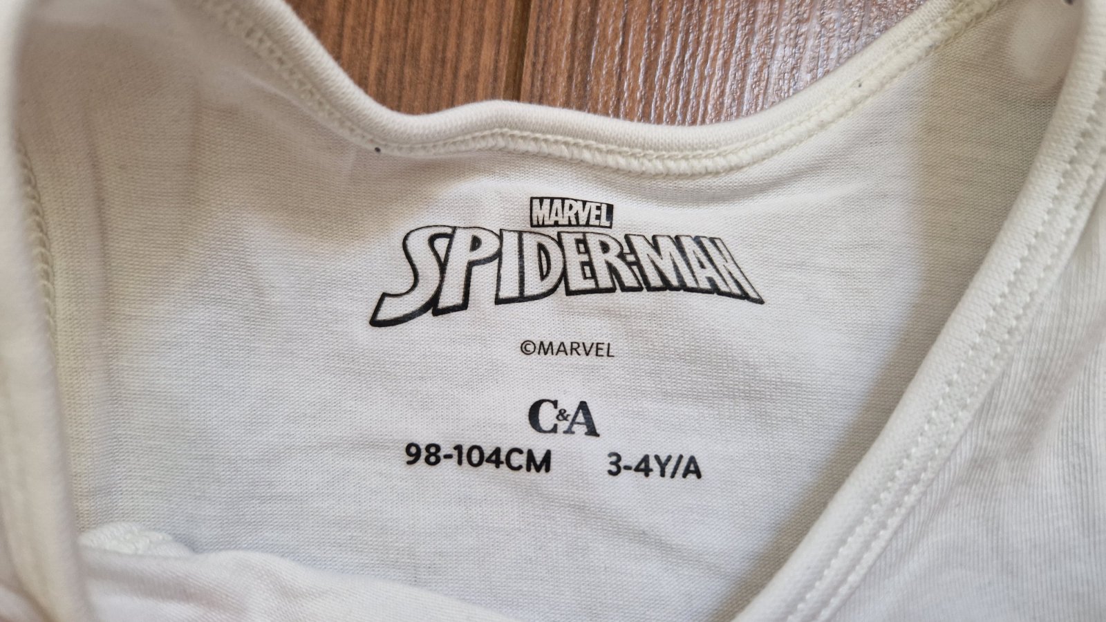 Pekný nosený stav vhodný aj do škôlky, bez flakov a poškodení. Farba už nie je pekná biela. Nepopraskana nažehľovačka, vytlačená farba.