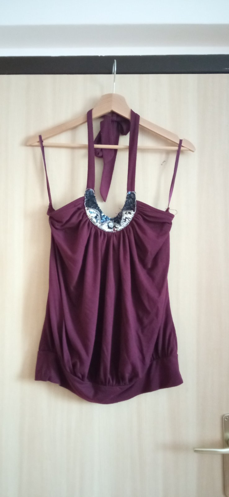amisu príležitostný top s flitrami M super stav dlžka: 52cm(bez ramienok) šírka: 38-52cm.