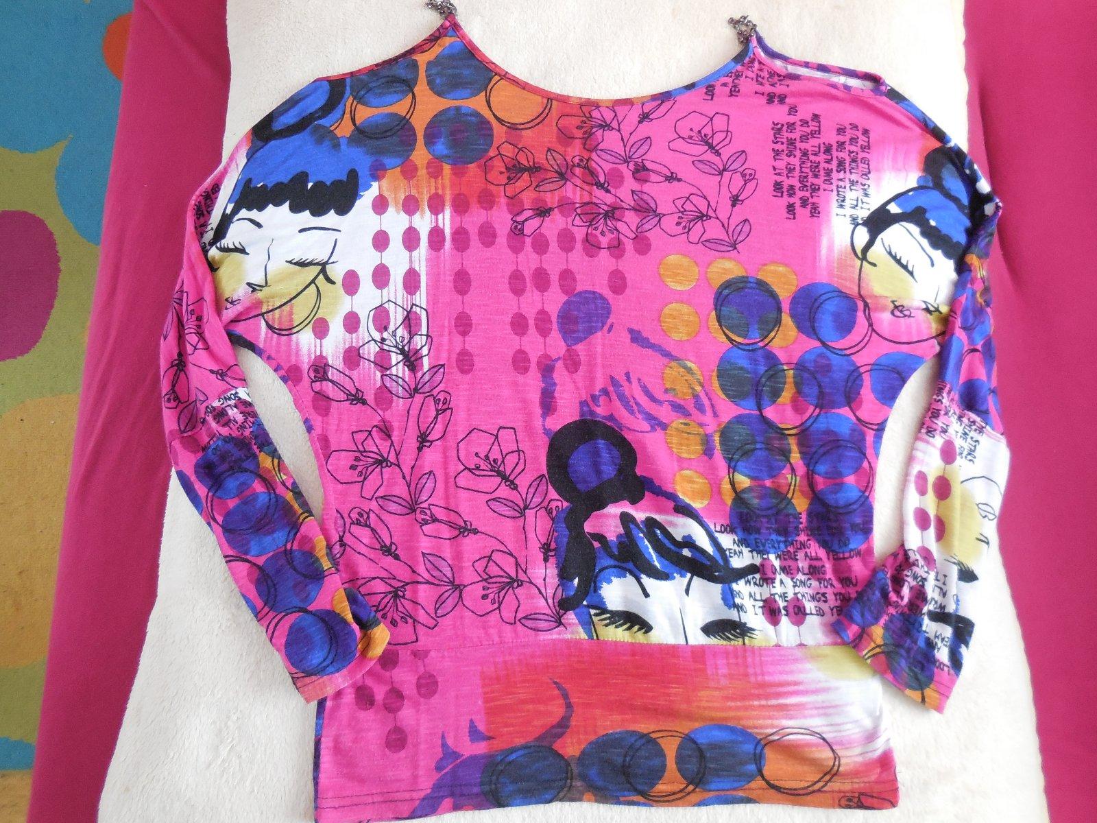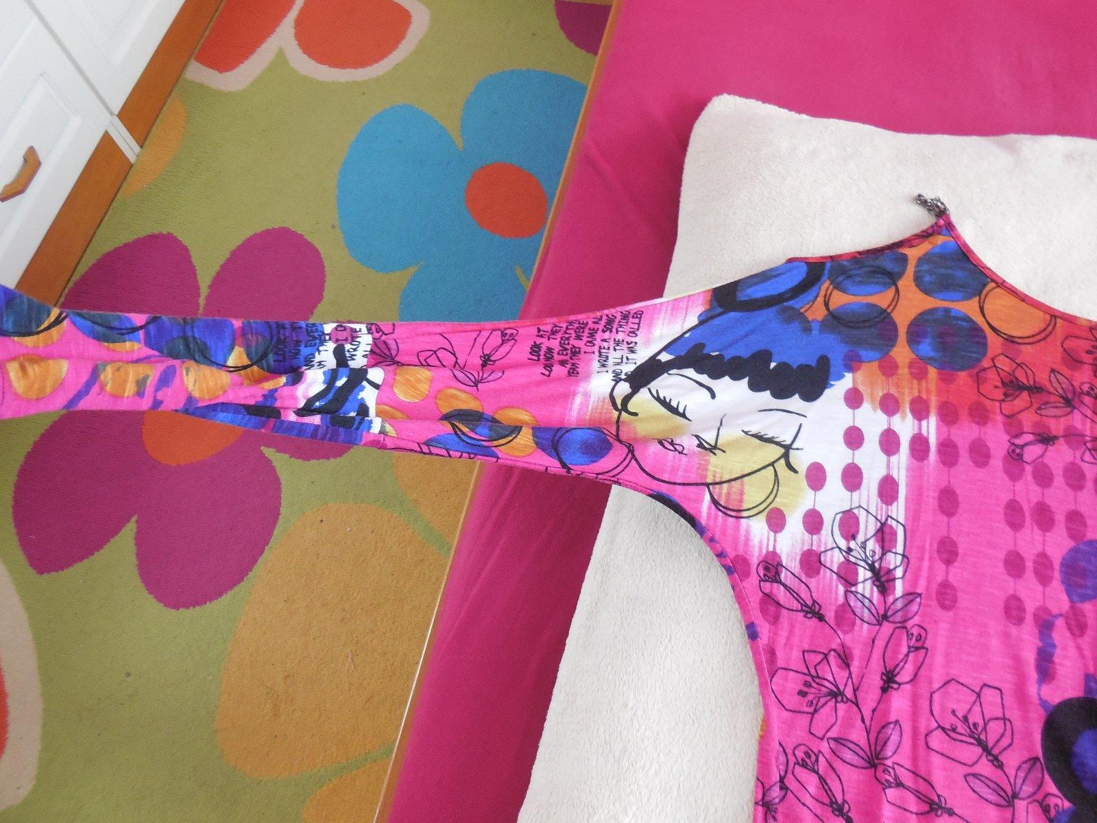 Nadherne MULTI body - top s dlhym rukavikom s vyraznou farebnou potlacou,spodna cast s nasitym cvockovym zapinanim.Material elasticky polyester s jemnym leskom. Dokladam real foto!!! Velkost L ...