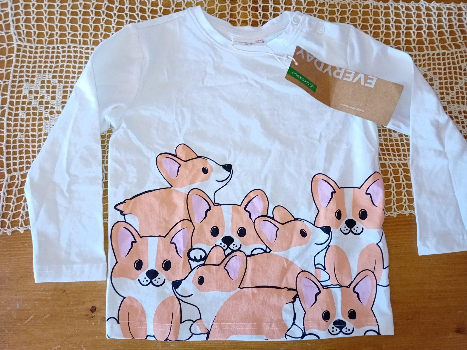 Rozkošné tričko so psíkmi, nenosené, nové, s visačkou, vhodné ako darček. Zapínanie pri krku.