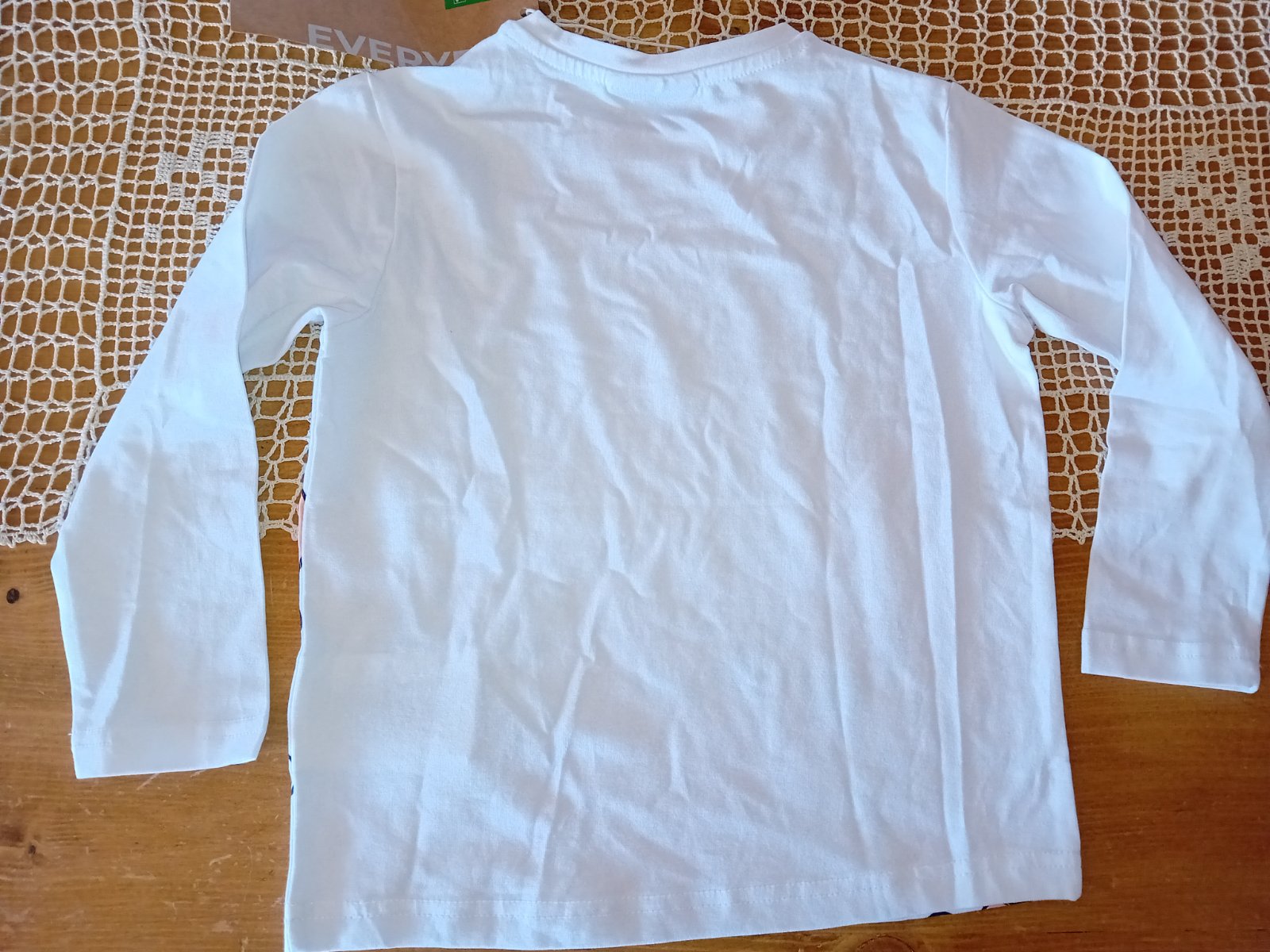 Tricko 100% bavlna, v dobrom stave, rukavy mierne nazberane, pri krku zapinanie na pukacky-lahke obliekanie.