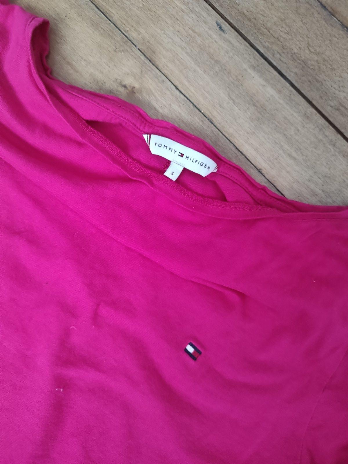 Tommy hilfiger tričko original 1x oblecene a vyprané,je bez známok nosenia v 100% stave,veľmi príjemný materiál,rukávy sú 3/4,veľkosť S,aj sedí,cena 10eur šírka cez prsia 41cm,natiahne sa,dĺžka vza...
