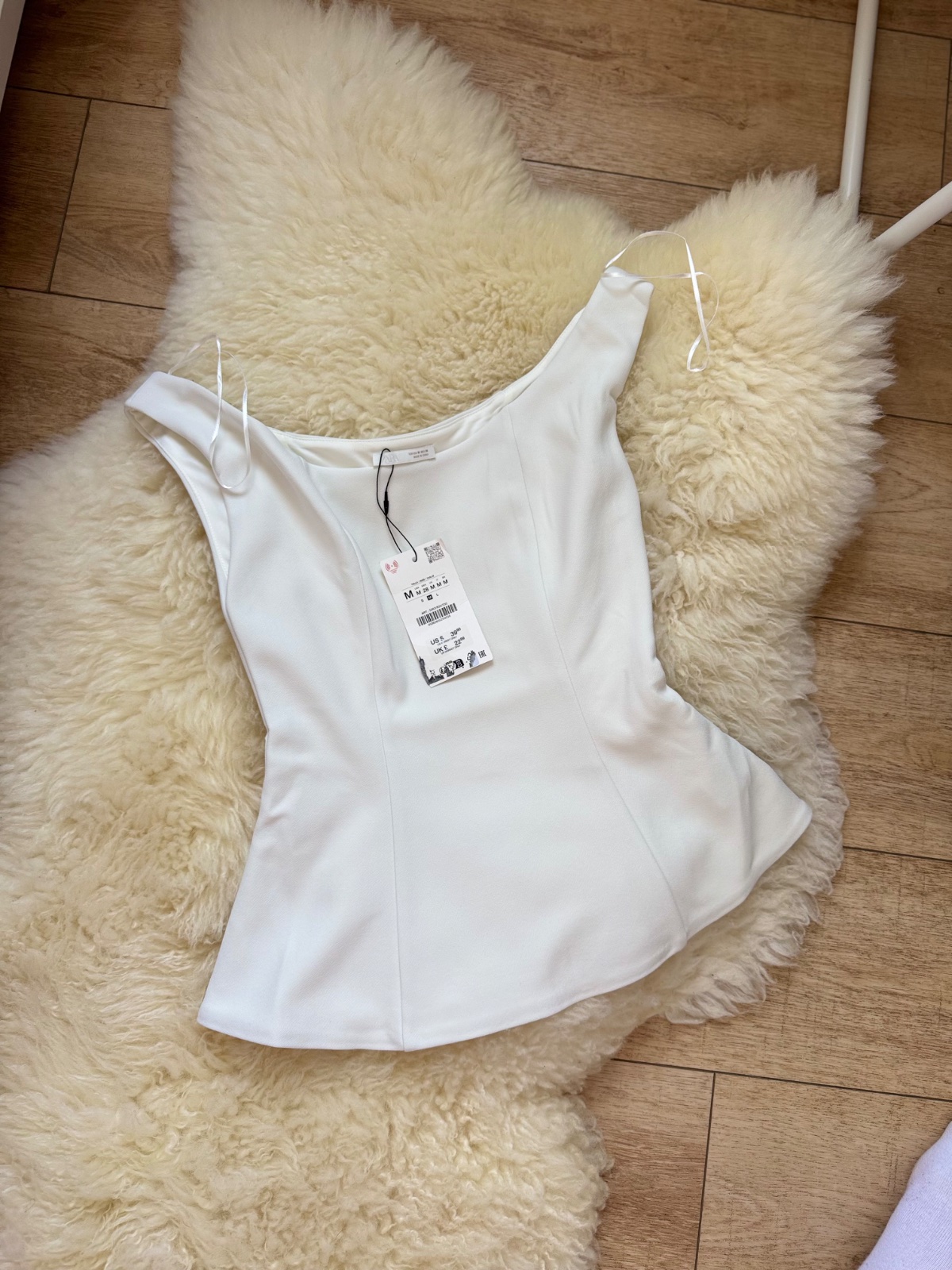 Biely chlpatý jemnučký top okolo krku. Veľkosť M. Odstrihnuté všetky visačky!