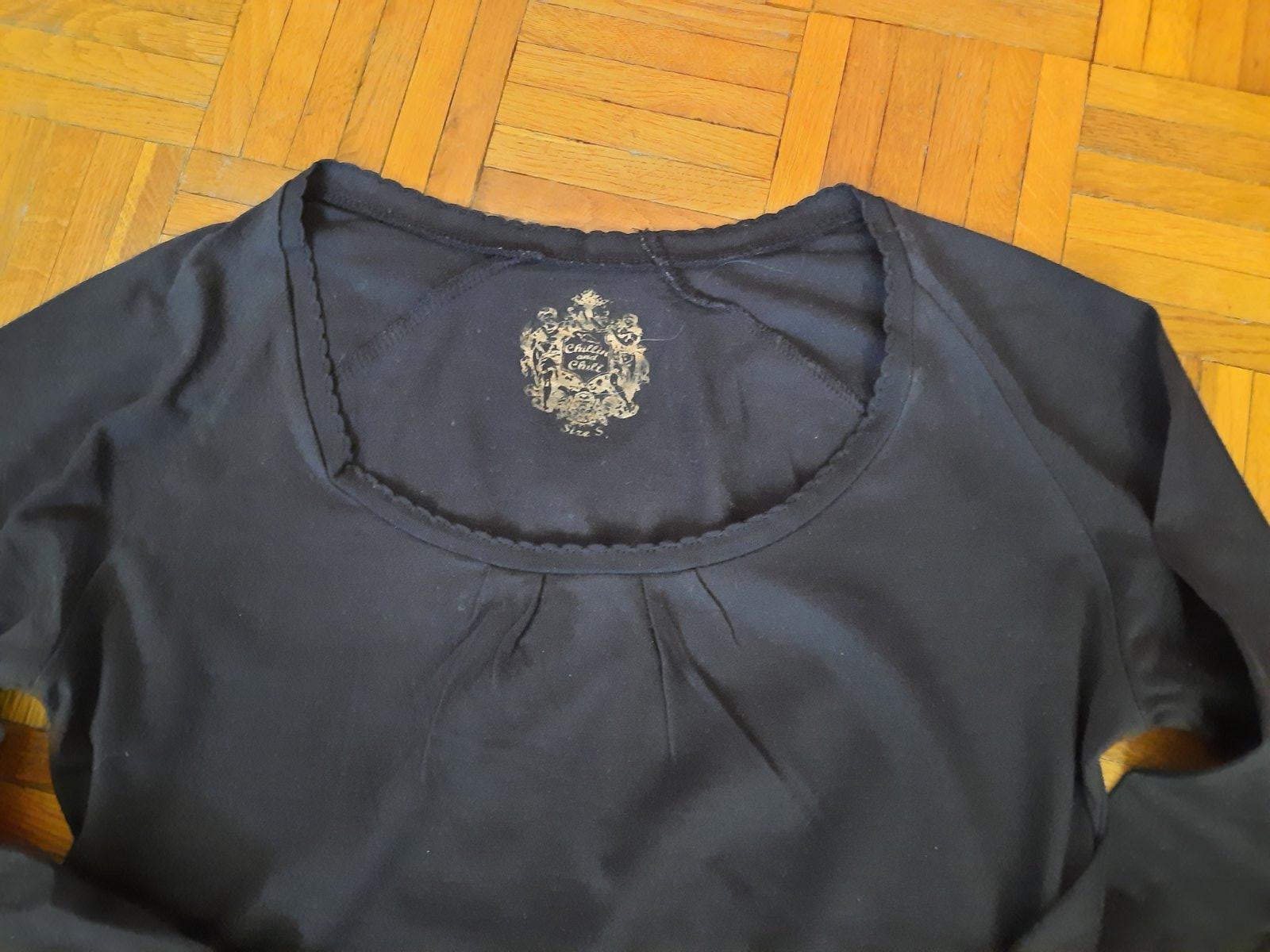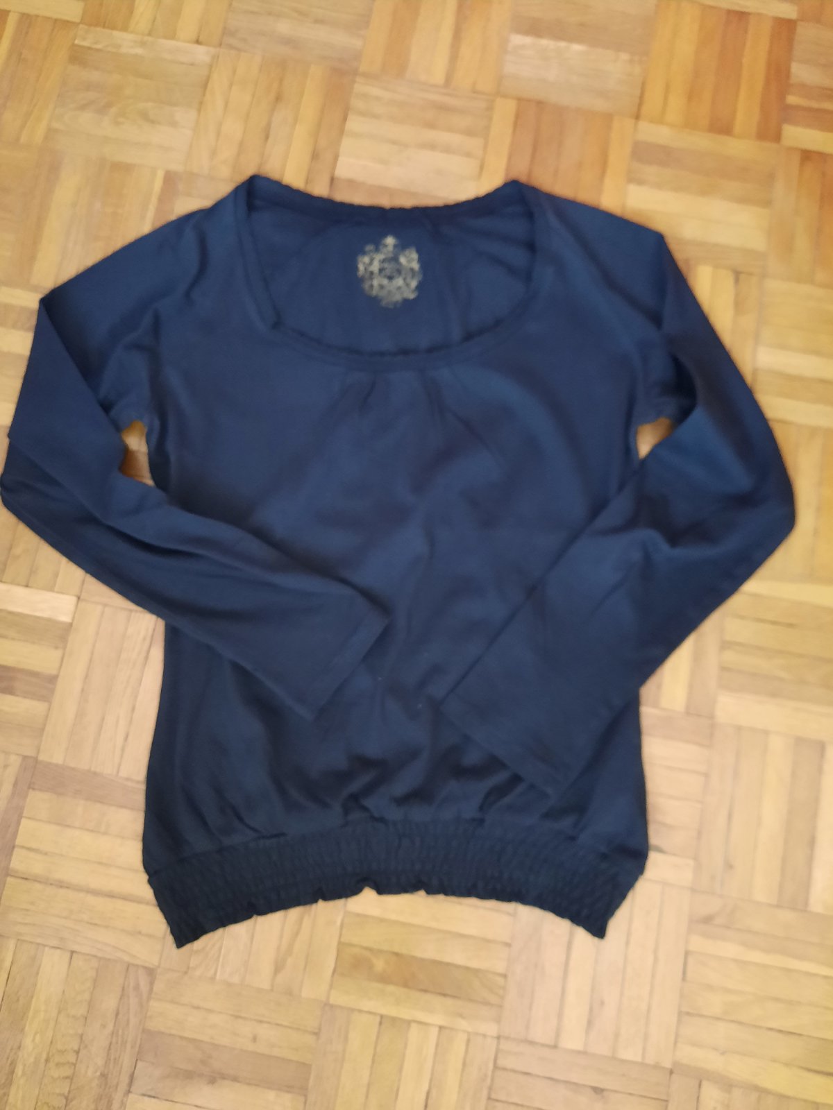 Pekné čierne tričko vo výbornom stave. Spodok je nariasený, dole je guma vo viacerých radoch. Vzadu je malá jemná aplikácia.