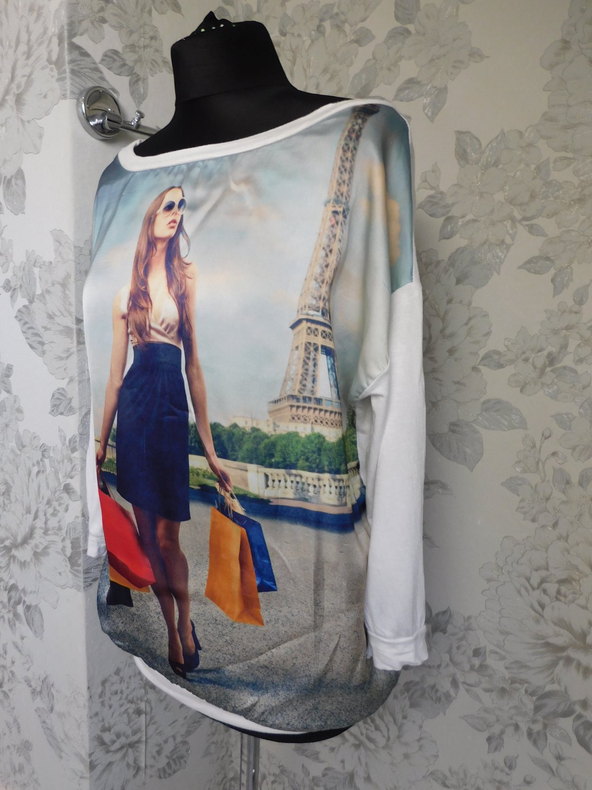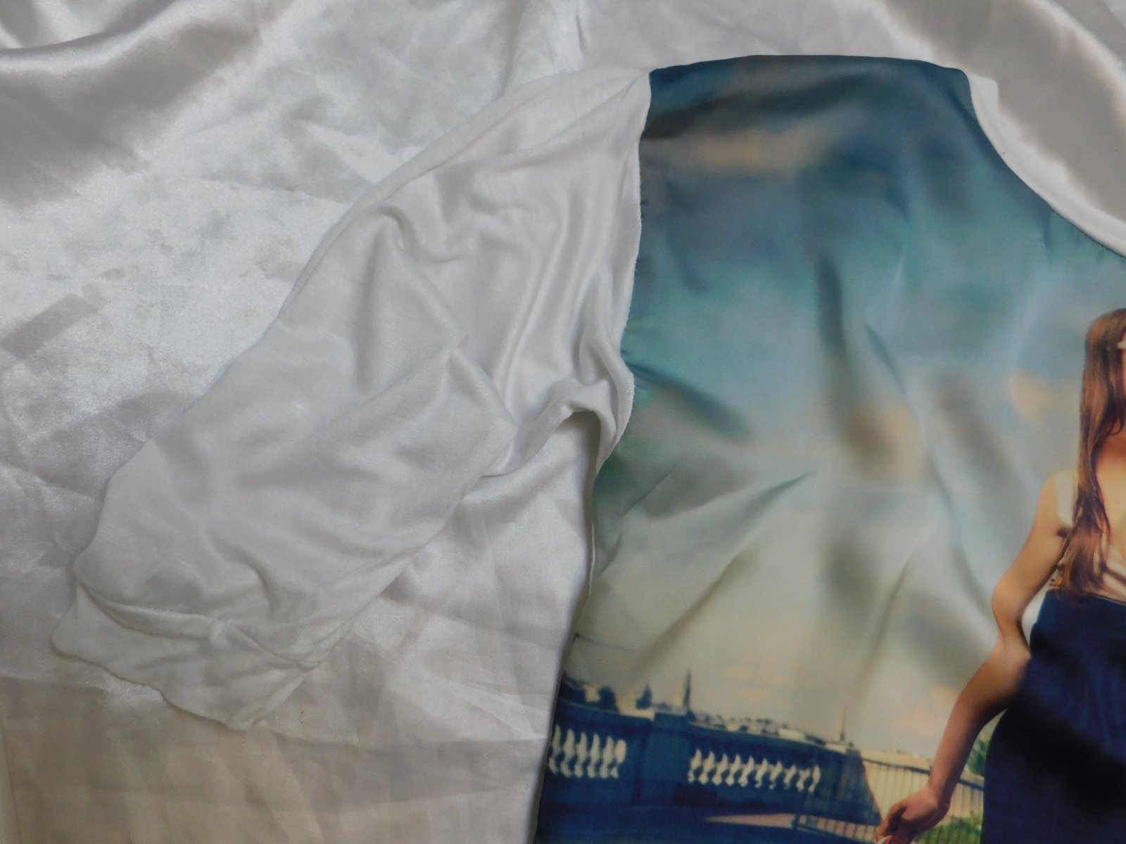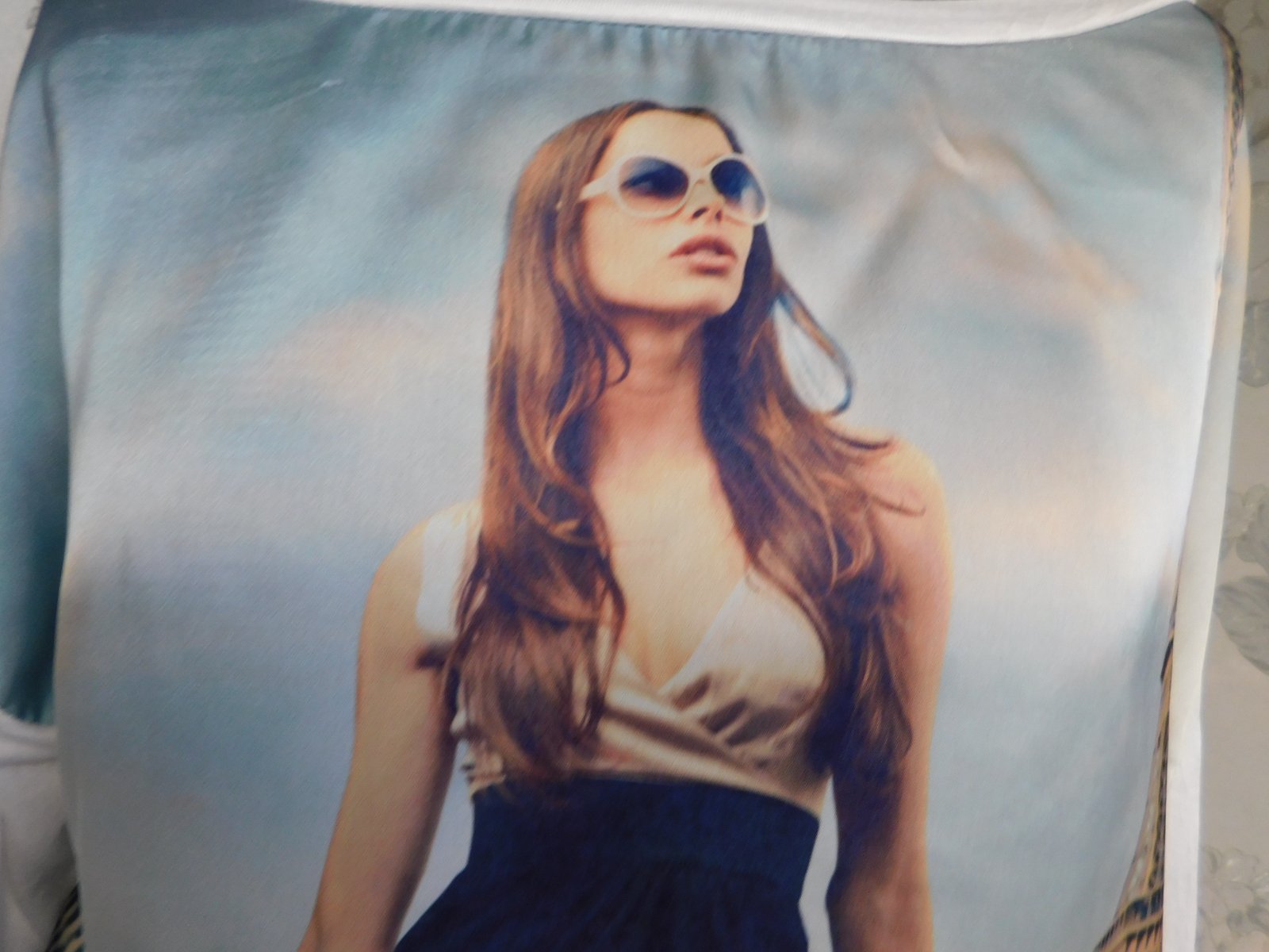 pekne trendy tričko bielej farby,vpredu so vzorom z pevnej latky,vzadu a rukavy z jemneho upletu.super stav. se37