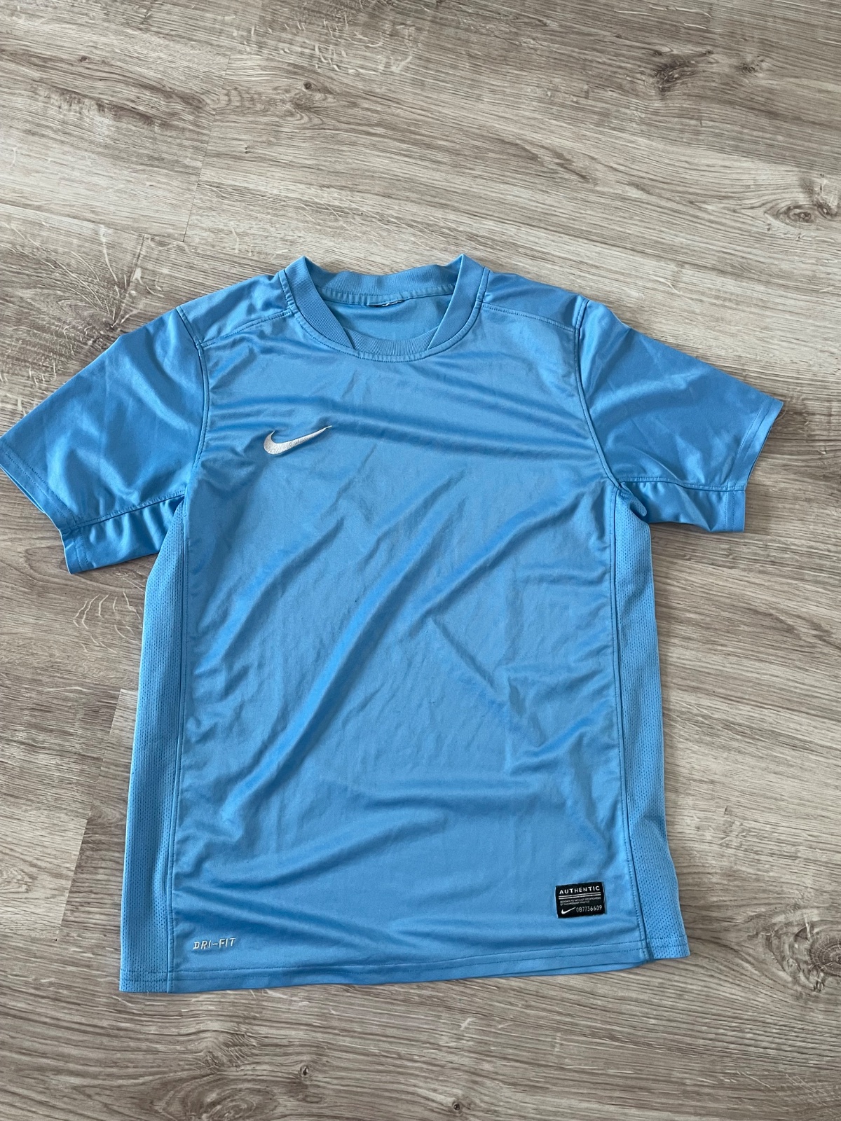 chlapčenské modré tričko, zapínanie na gombíky ku krku, golier, príjemný kvalitný materiál, zloženie: 100 % bavlna, stav: výborný, málo nosený, značka: Nike, uvádzaná veľkosť na štítku 10-12 rokov...