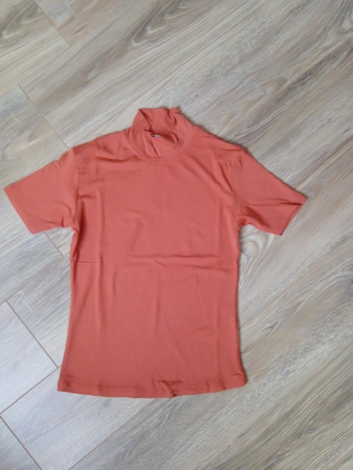 Krásne elastickejšie tričko - top so stojačikom. Pekná škoricová farba.
