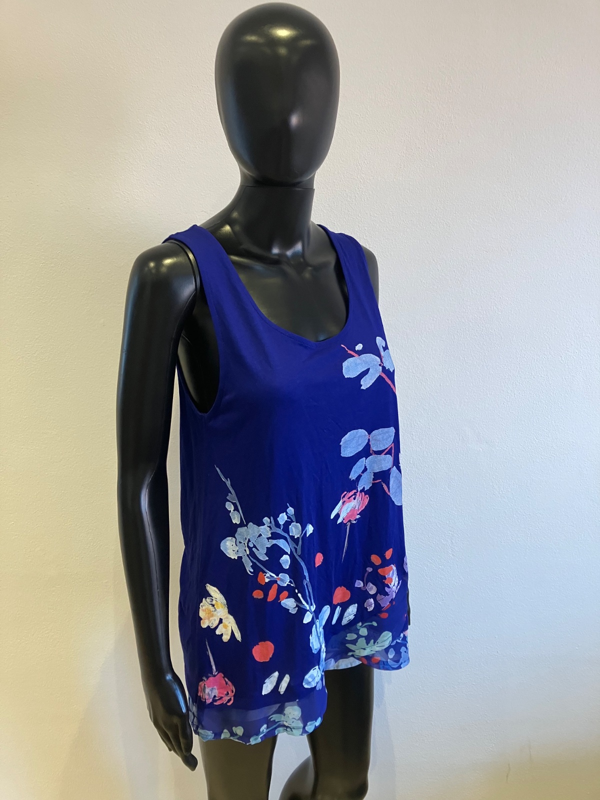 Dámske tričko bez rukávov, s volánom, vzorované, elastické, tenké.