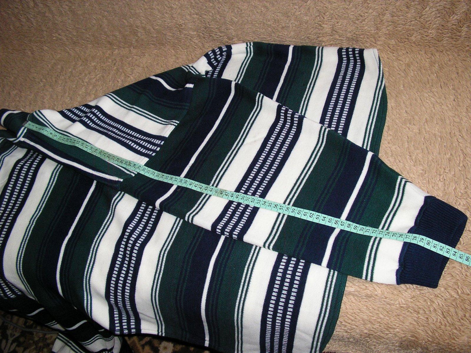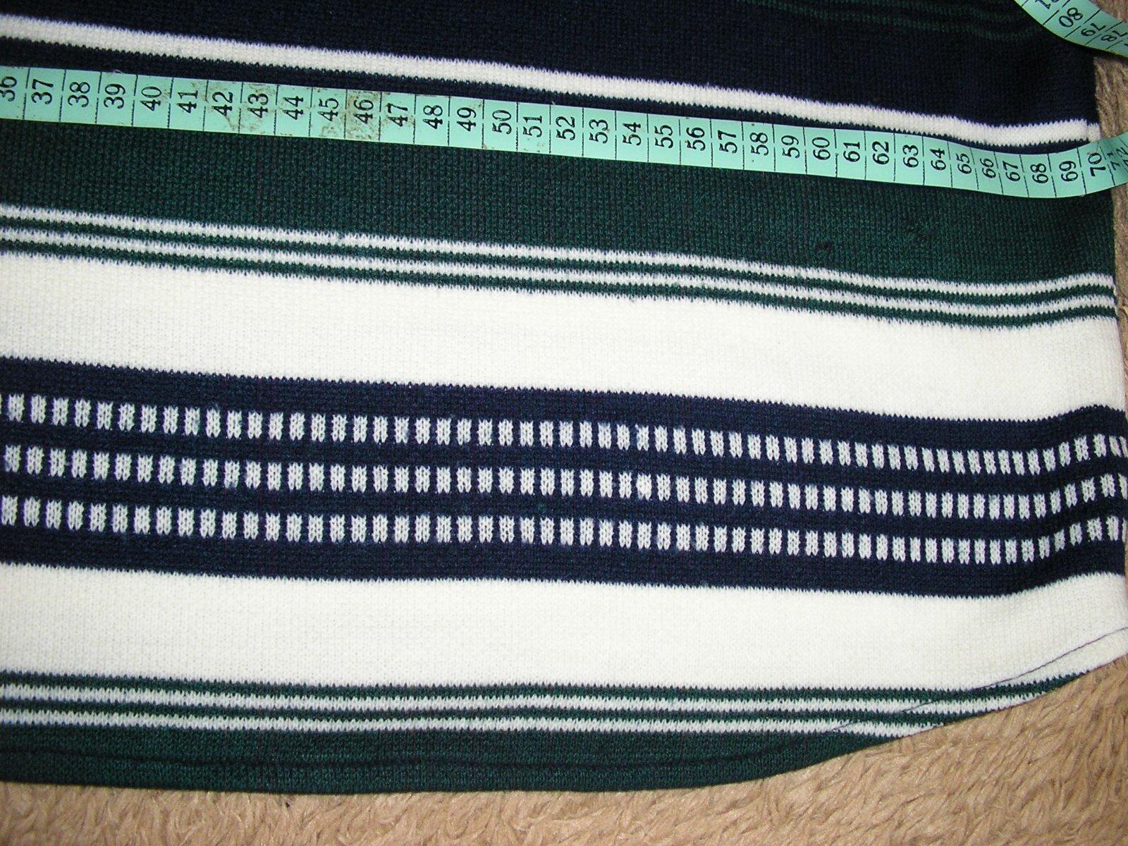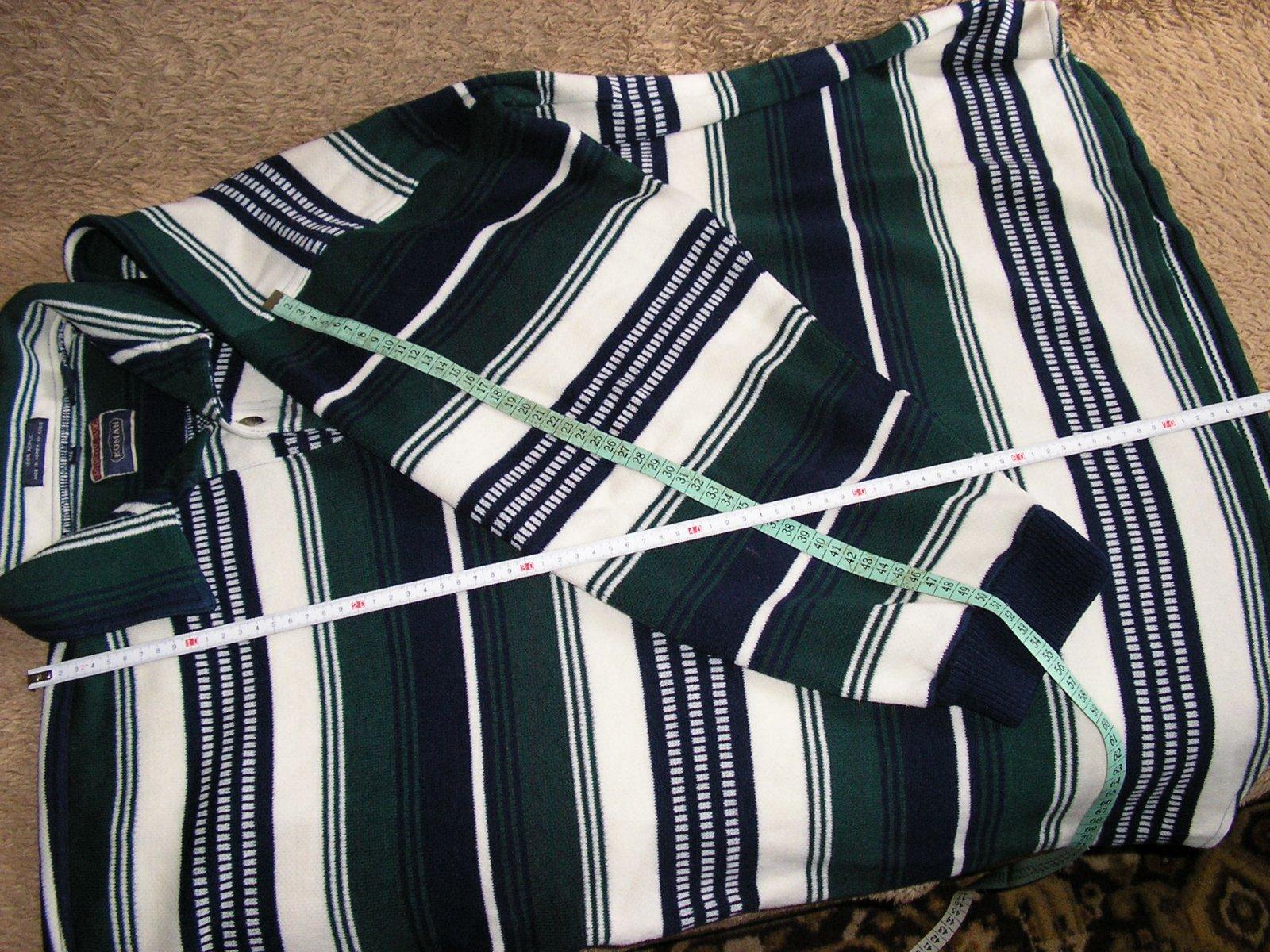 Okrúhly výstrih, s malým golierom a so zapín. na 3 gombíky. Ruk. dlhé. Vzadu sú 2 malé diery – zašité. Made in Korea. Miery viď. na ob. Tričko ja zachovalé.