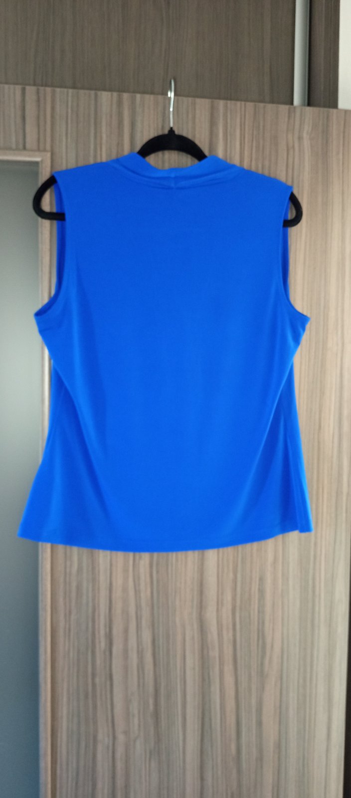 1. Farba kráľovská modrá. Dovezené z USA, oblečené pár krát, vhodné na veľké prsia. Šírka meraná pod pazuchami je 55cm v kľude, dĺžka je 70cm. Je ako nové, žiadne poškodenie. Symbolická cena