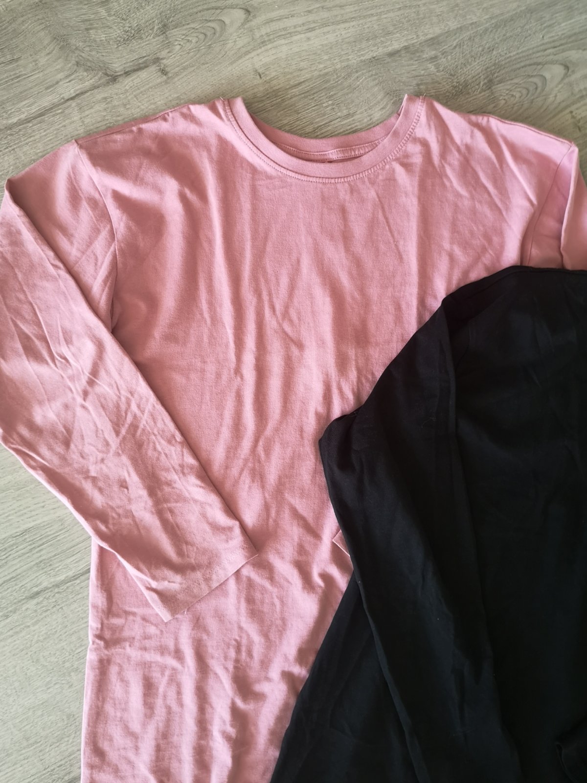 Predám dve tričká - tuniky s dlhým rukávom, velkost 164. Dĺžka 80 cm, šírka pod pazuchami 46 cm, dĺžka rukavu 50 cm. Minimálne nosené, v top stave.