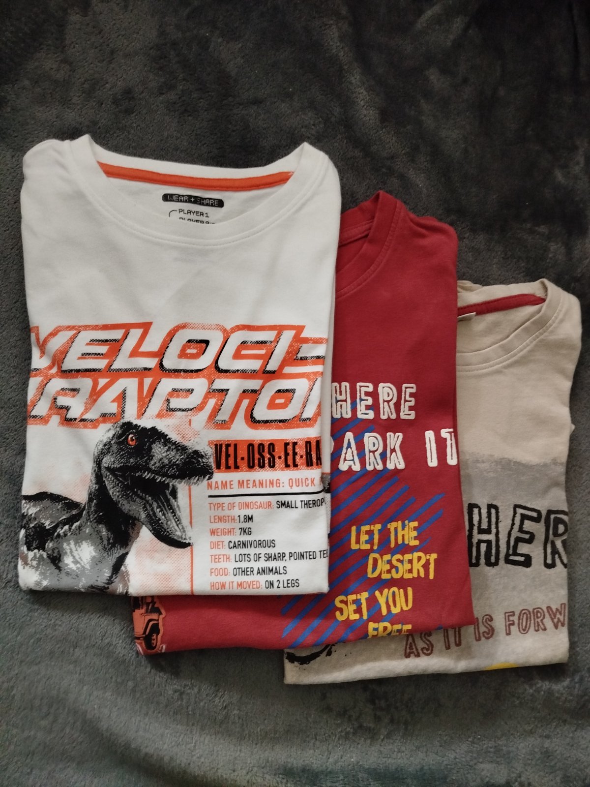Predam 4 tricka, 3 z toho ani raz oblecene v super stave. Celkova dlzka triciek je 54-58 cm. Cena je spolu za vsetky a predavam ich len spolu.