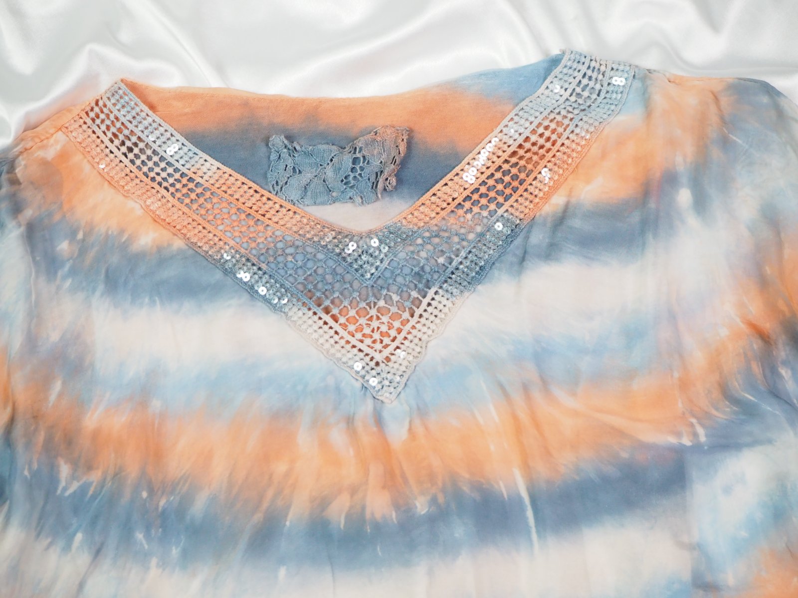 Kvalitný letný top 2v 1, vrch transparentný, spodok úpletový elastický, materiál 60% hodváb, 40% viskóza, super stav.
