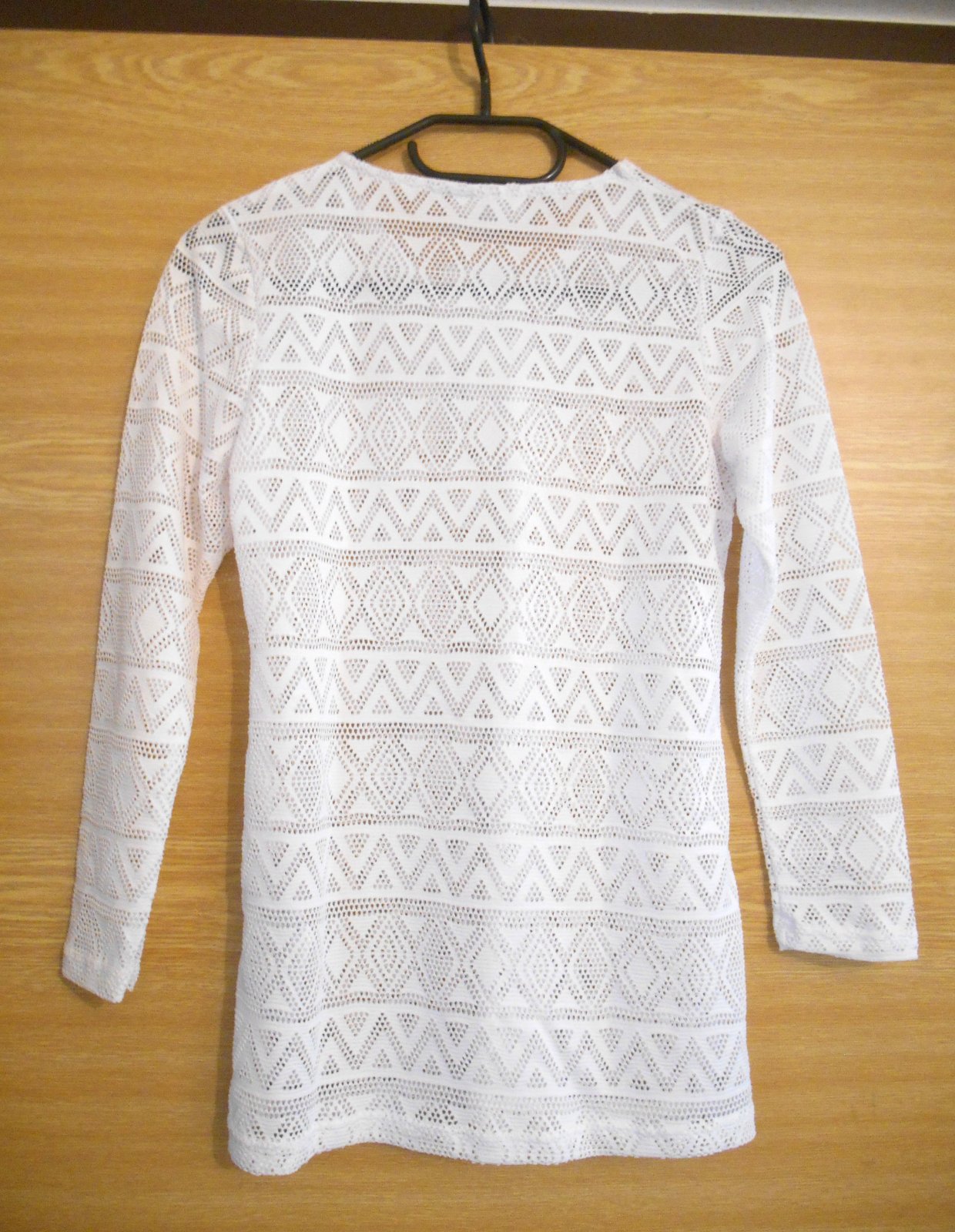 dĺžka od pleca 61 cm, šírka v podpazuší 40 x 2 cm, pás 38 x 2 cm, boky 42 x 2 cm, dĺžka rukáva od krku 56 cm