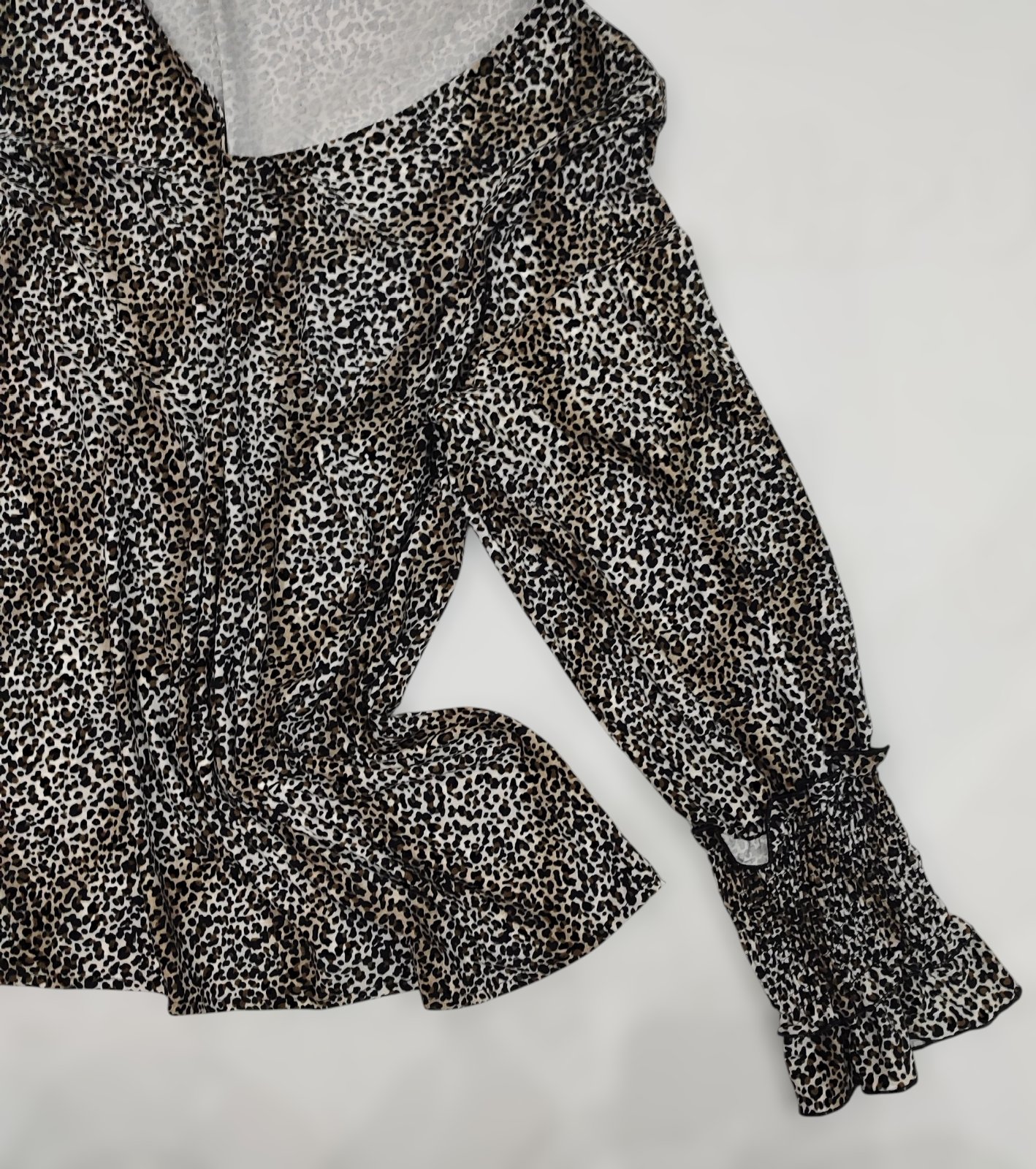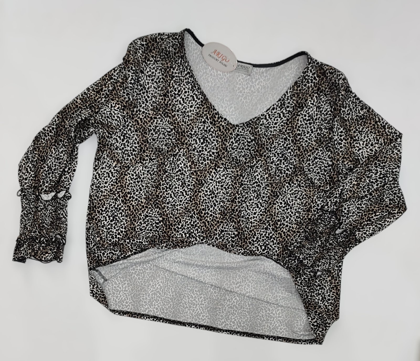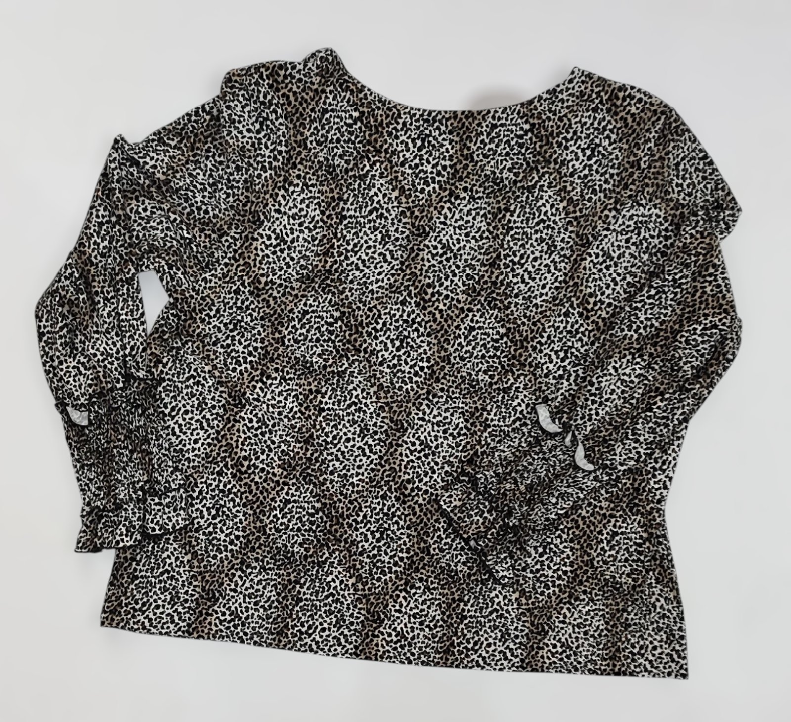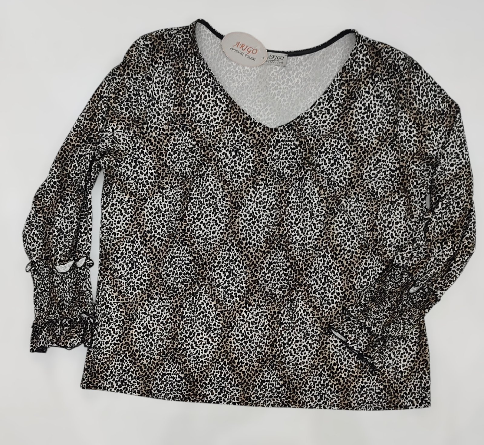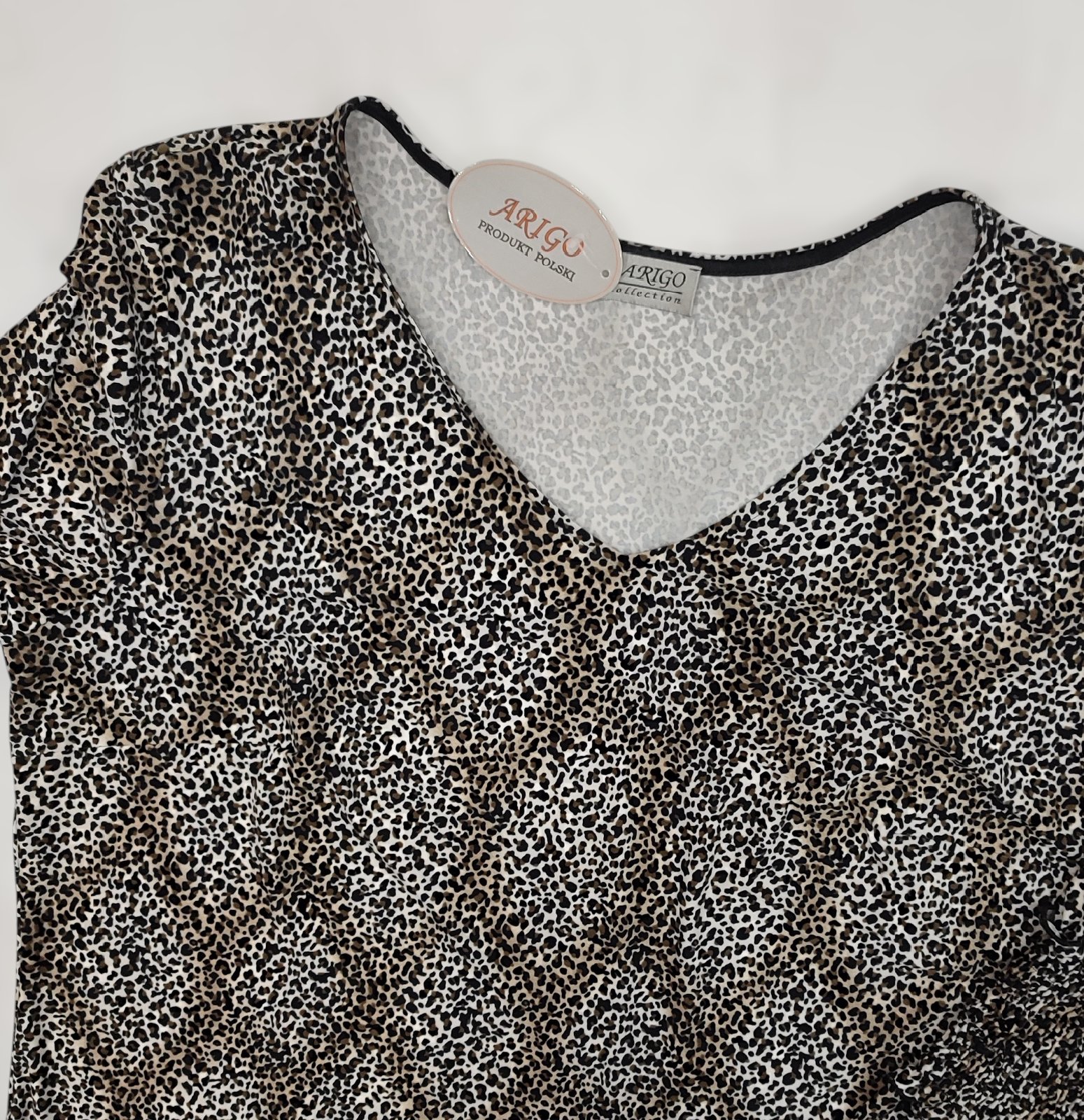Predám tento čisto nový top s leopardím vzorom so zaujímavými rukávmi takže sa dá nosiť aj ako blúzka, značka ARIGO, veľkosť je 48, napísala som rozmery.