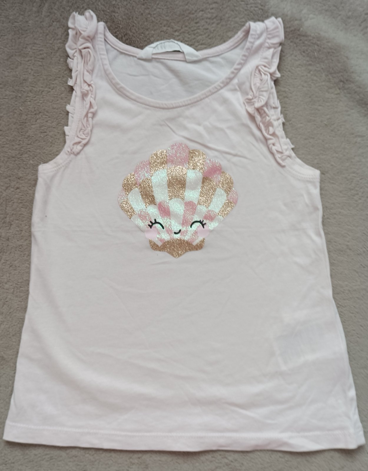 Predam. Ma vzadu malu dierku vid. foto. Vek: 4-6 rokov, tak je uvedene na tricku. Farba: bledoruzova Organicka bavlna.