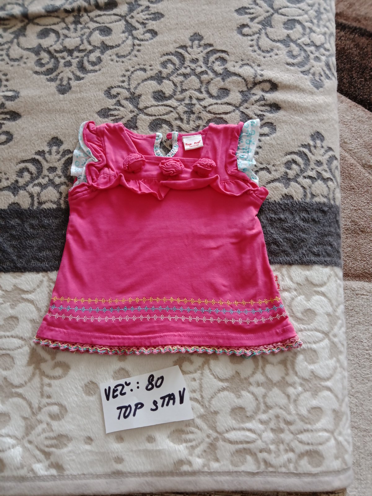 Predám dievčenské tričko s krátkym rukávom veľ.80,v top stave,cena je 2,50eur.