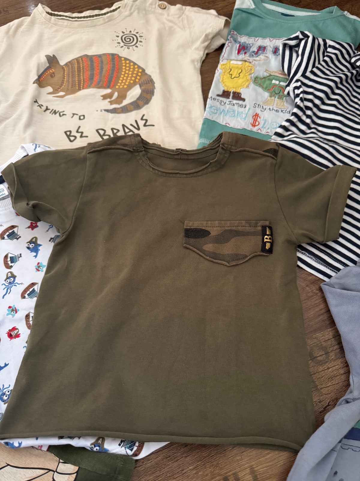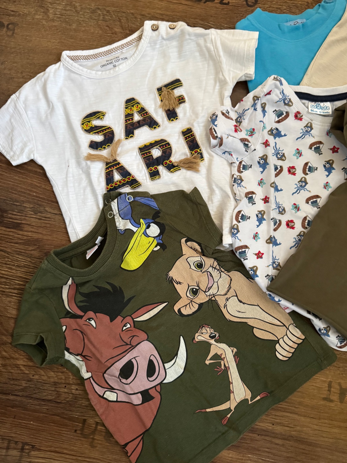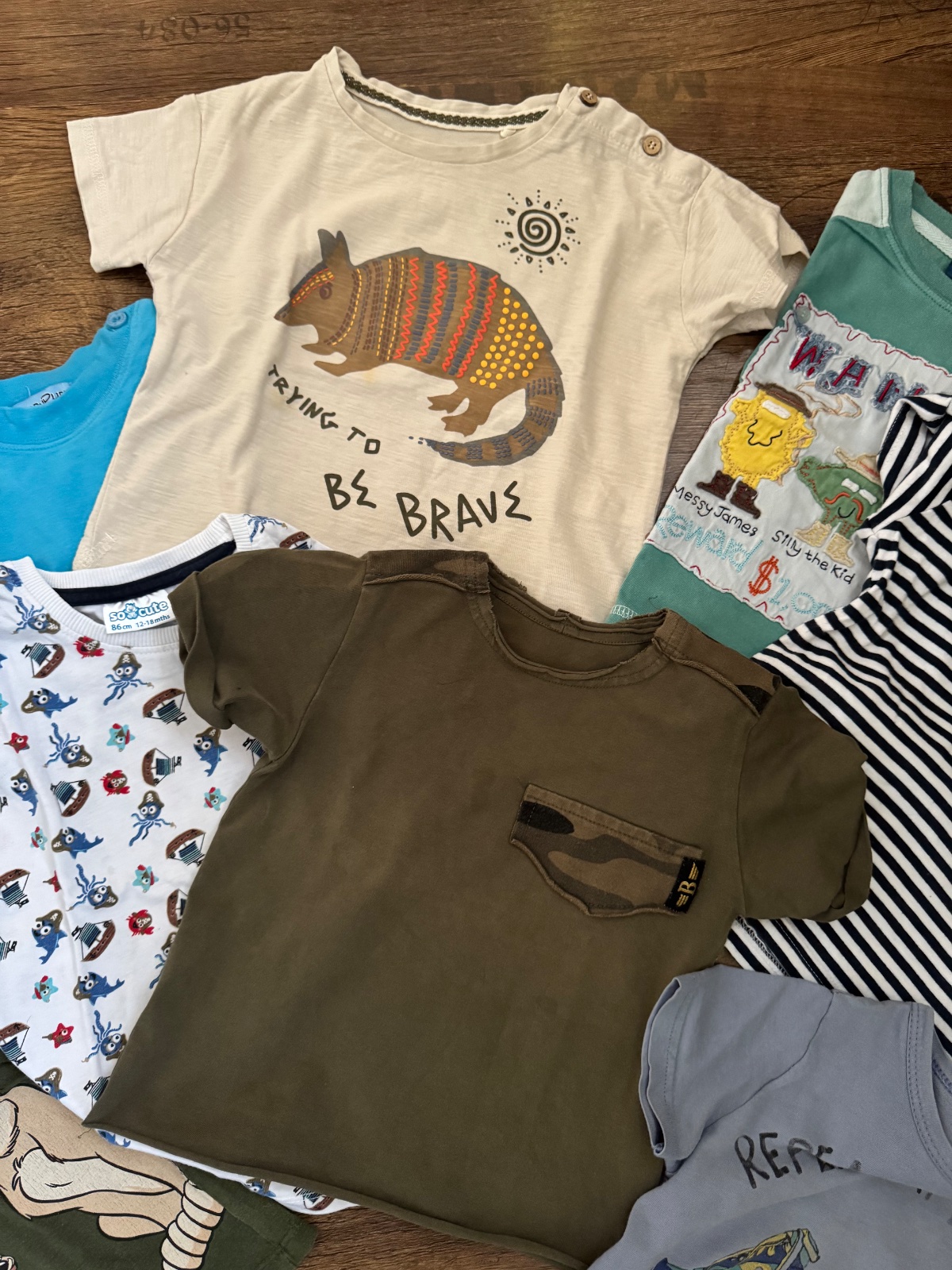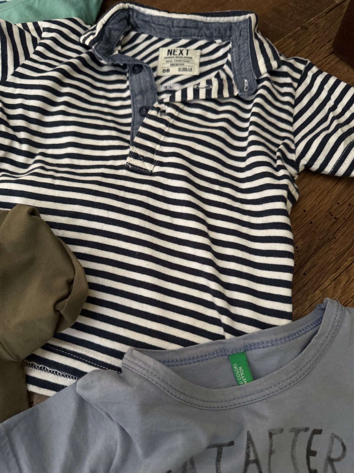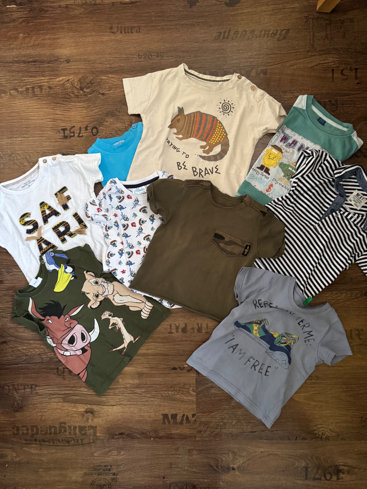 Ponúkam sadu 9ks bavlnených tričiek, niektoré s elastanom vo veľkostiach 86-92. Boli nosené ale naďalej vo veľmi peknom stave. Sú tam rôzne značky ako polokošeľa Next, TU, Disney, Reserved, Bennetton alebo slovenská značka Beee. Cena za všetky. Poštovné podľa taríf.