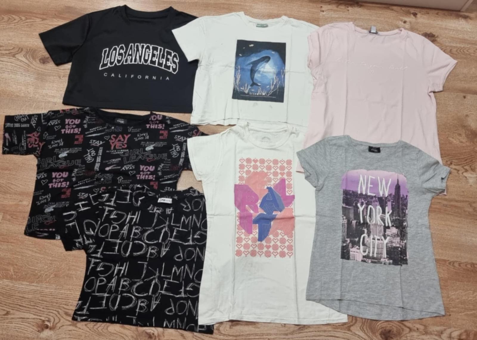 Predám sedem nosených tričiek, štyri kratšie - crop top, tri klasické. Veľkosť 10 - 13 rokov, cca 146 - 152 cm, S. Cena za všetky 5€.