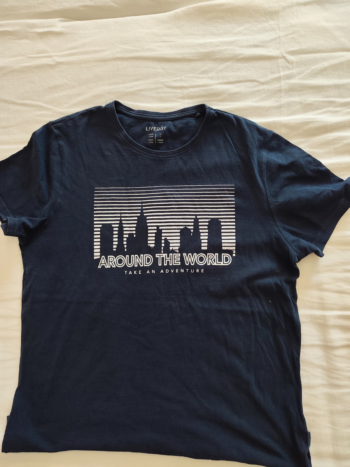 Predám lacno tričko s krátkym rukávom. Veľkosť L.. Zn. Livergy. Tmavomodré vpredu s nápisom