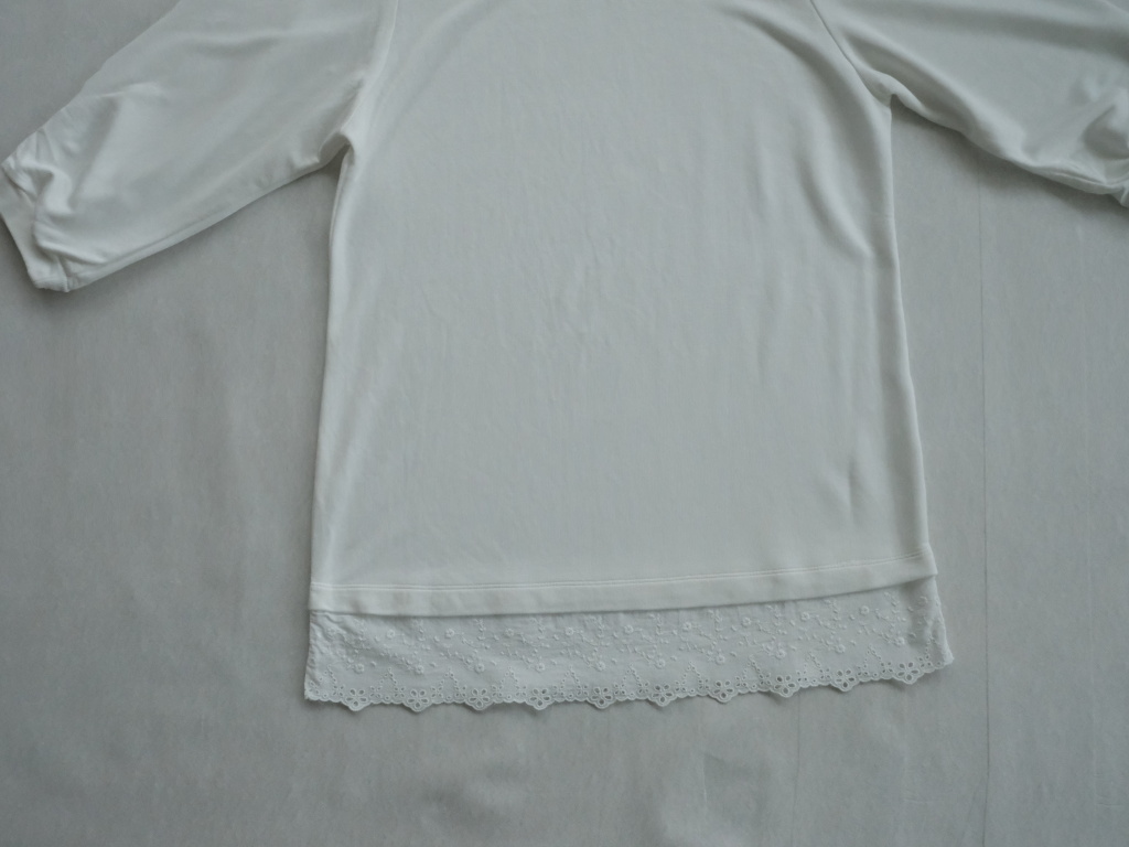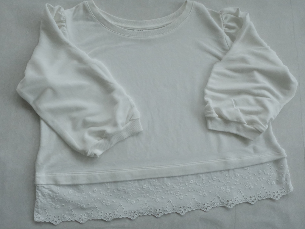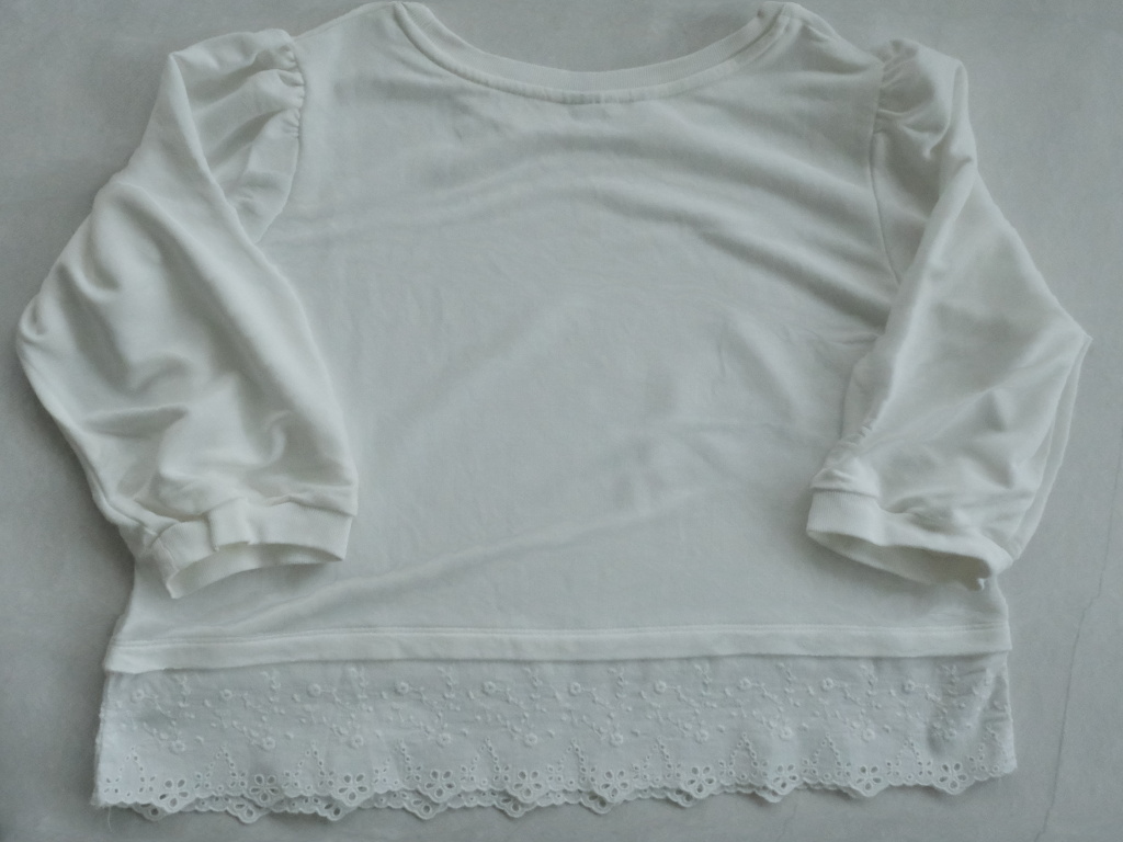 Popis tovaru: Biela elegantná mikina alebo hrubšie tričko s 3/4 rukávmi a na spodku s krajkou