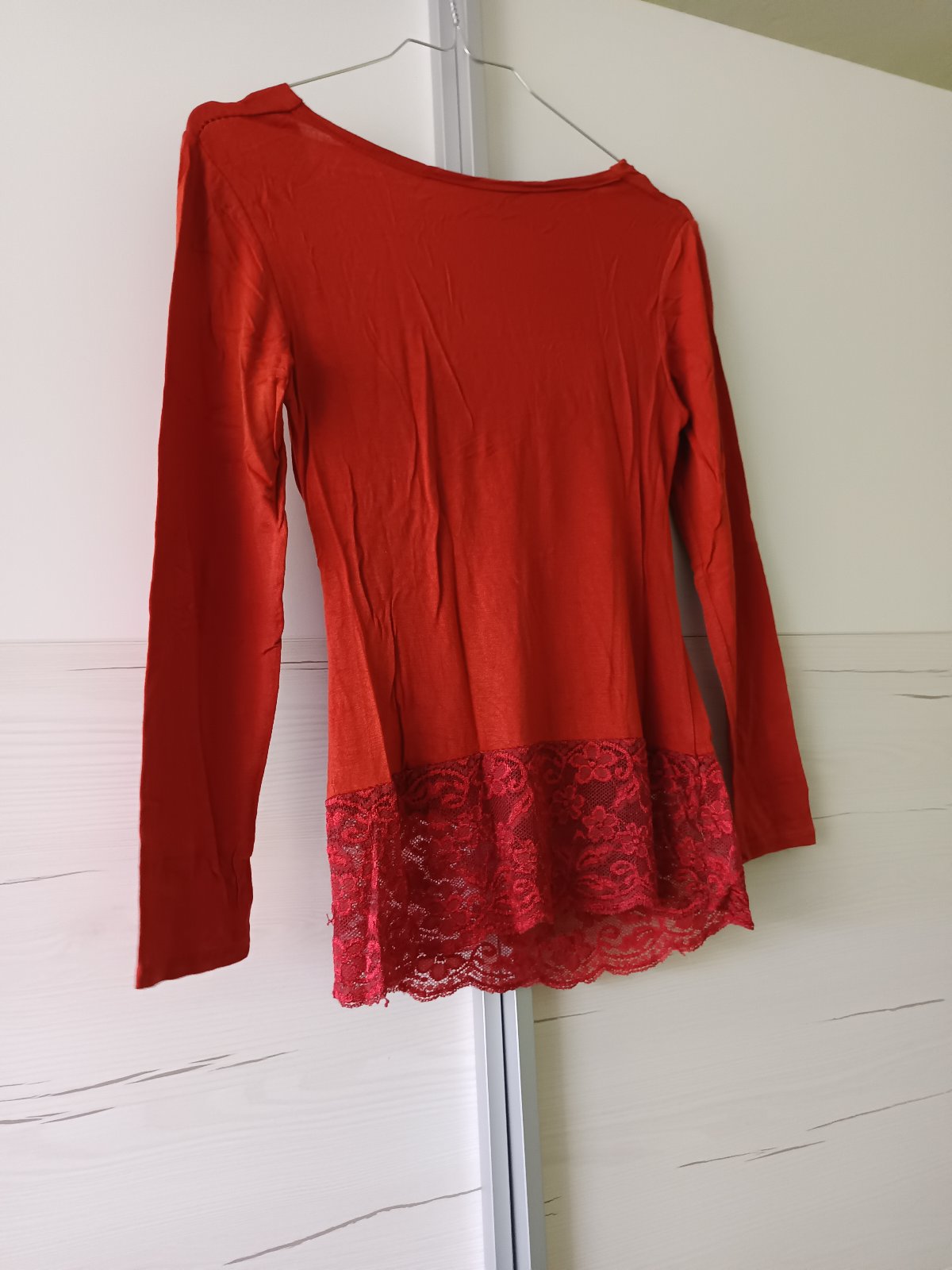 Predám 2 tričká s dlhým rukávom. Jedno je v tehlovej farbe zdobené čipkou a druhé fialové s bielou farbou. Cena za obe 4 eurá + pošta. Veľkosť S, pekne ukážu na tele.