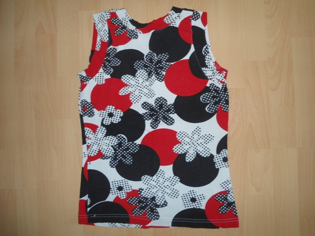 177a. cierno/cerveno/biely top, velk. 38, 95% viskoza, 5% elastan, dlzka 54cm, cez prsia 42x2cm