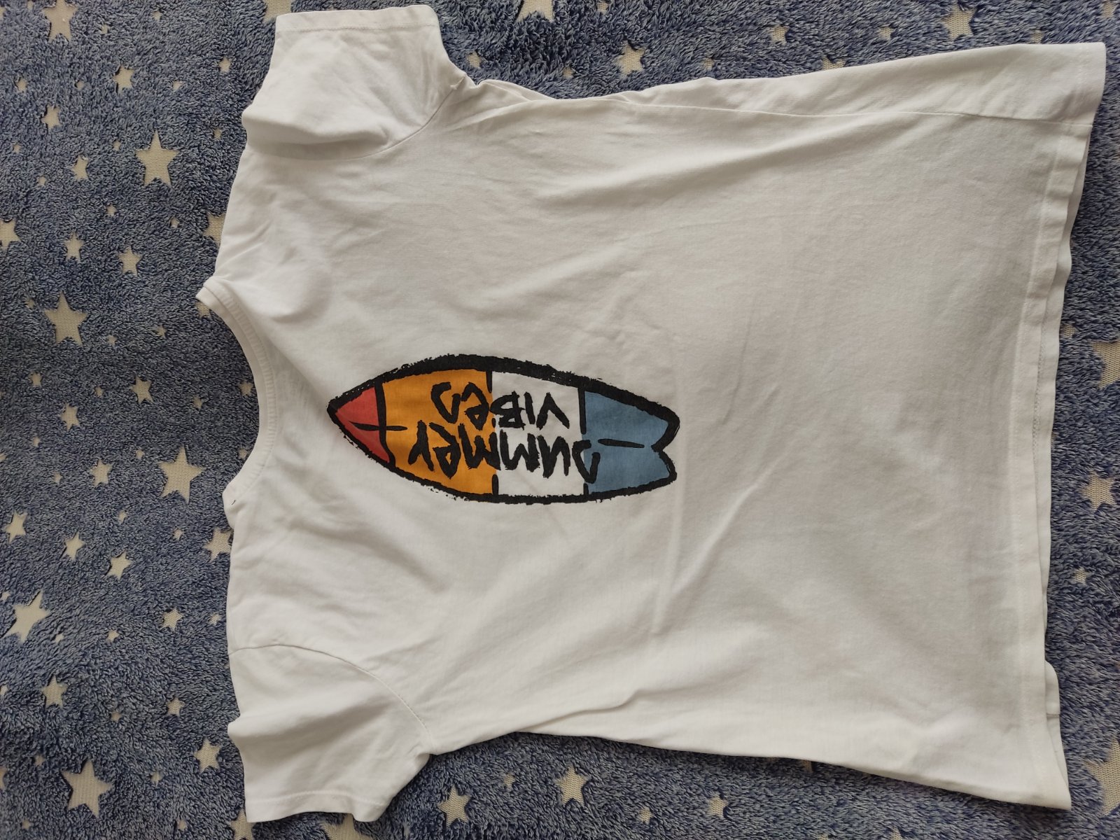 Tričko s veľmi pekným motívom. Nebolo moc nosené, od výroby ale prišlo akoby zlepené na mieste obrázku a po odlepení - vyrovnaní na ňom zostala stopa. Viď foto.