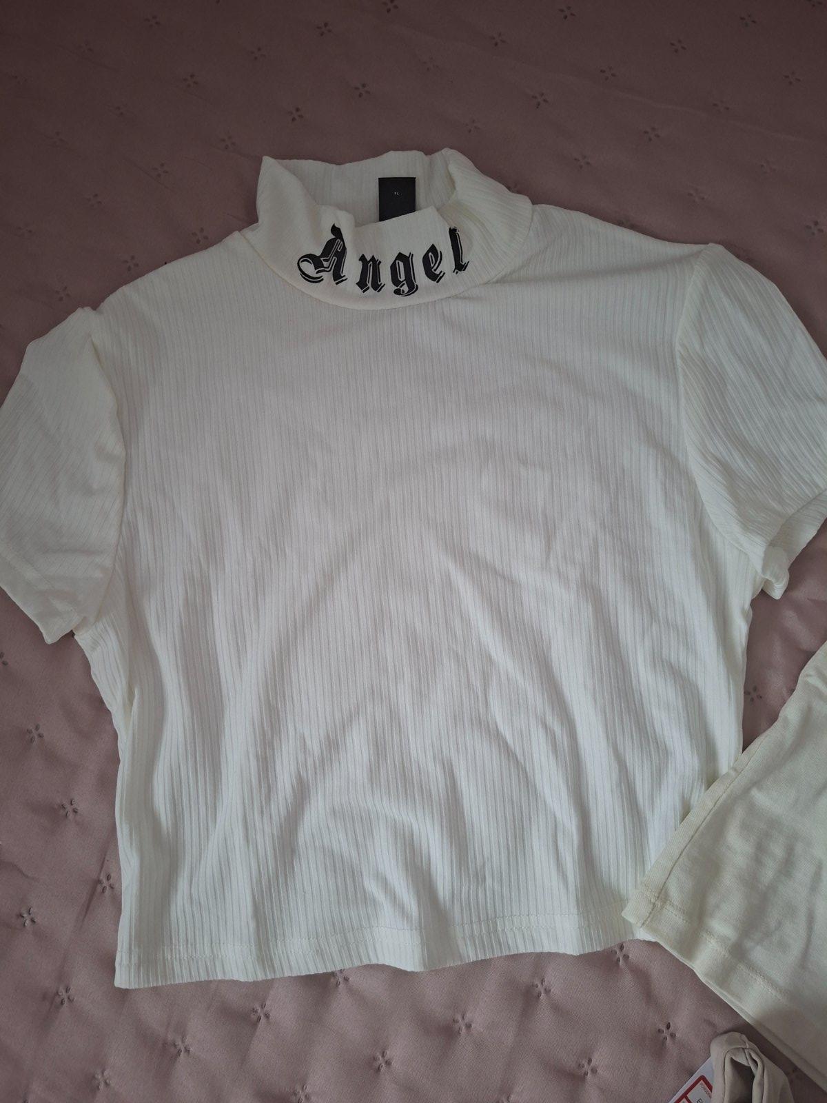 Shein, biele tričko, nápis angel na krku