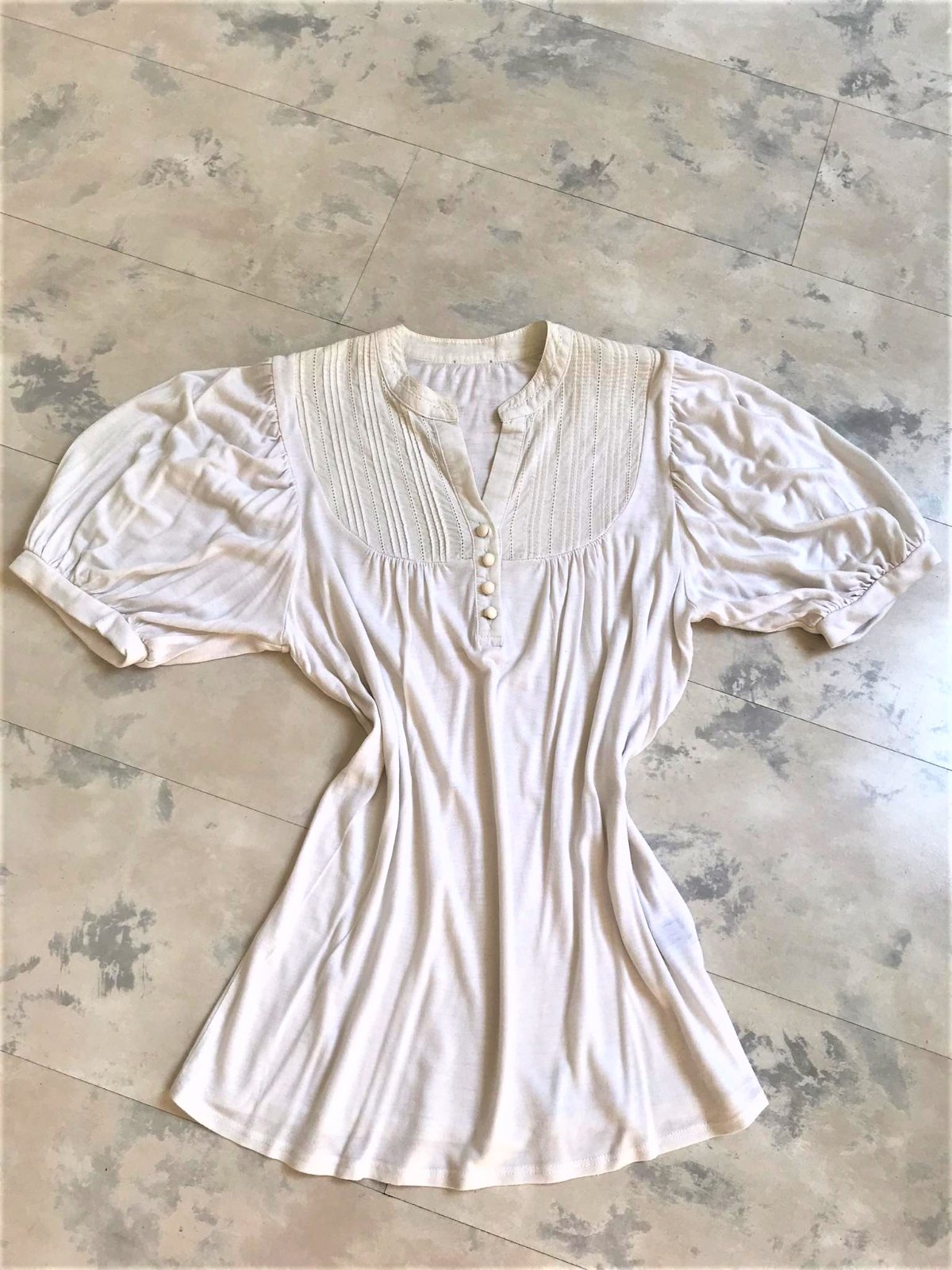 kvalitné jemné romantické tričko s krásnymi detailami,nosené ale veľmi zachovalé, dlžka celkom = 62 cm, dlžka meraná na boku od pazuchy smerom dolu =39 cm, šírka po úplnom natiahnutí pod pazuchou = 46 x 2 cm,ale pekne to vyzerá ak riasenie nie je natiahnuté,ale pekne voľne padá,značka OASIS, 100% bavlna ( viskóza )