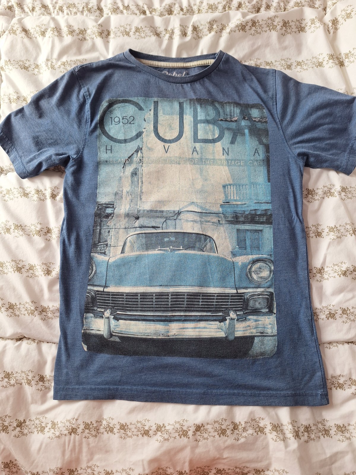 tričko je v top novom stave, párkrát vzaté, mame veľmi veľa tričiek, 158, ale zdá sa mi mensie preto dávam k 146, dĺžka 57cm, šírka 44cm, pozrite si bazarik a ušetríte na poštovnom