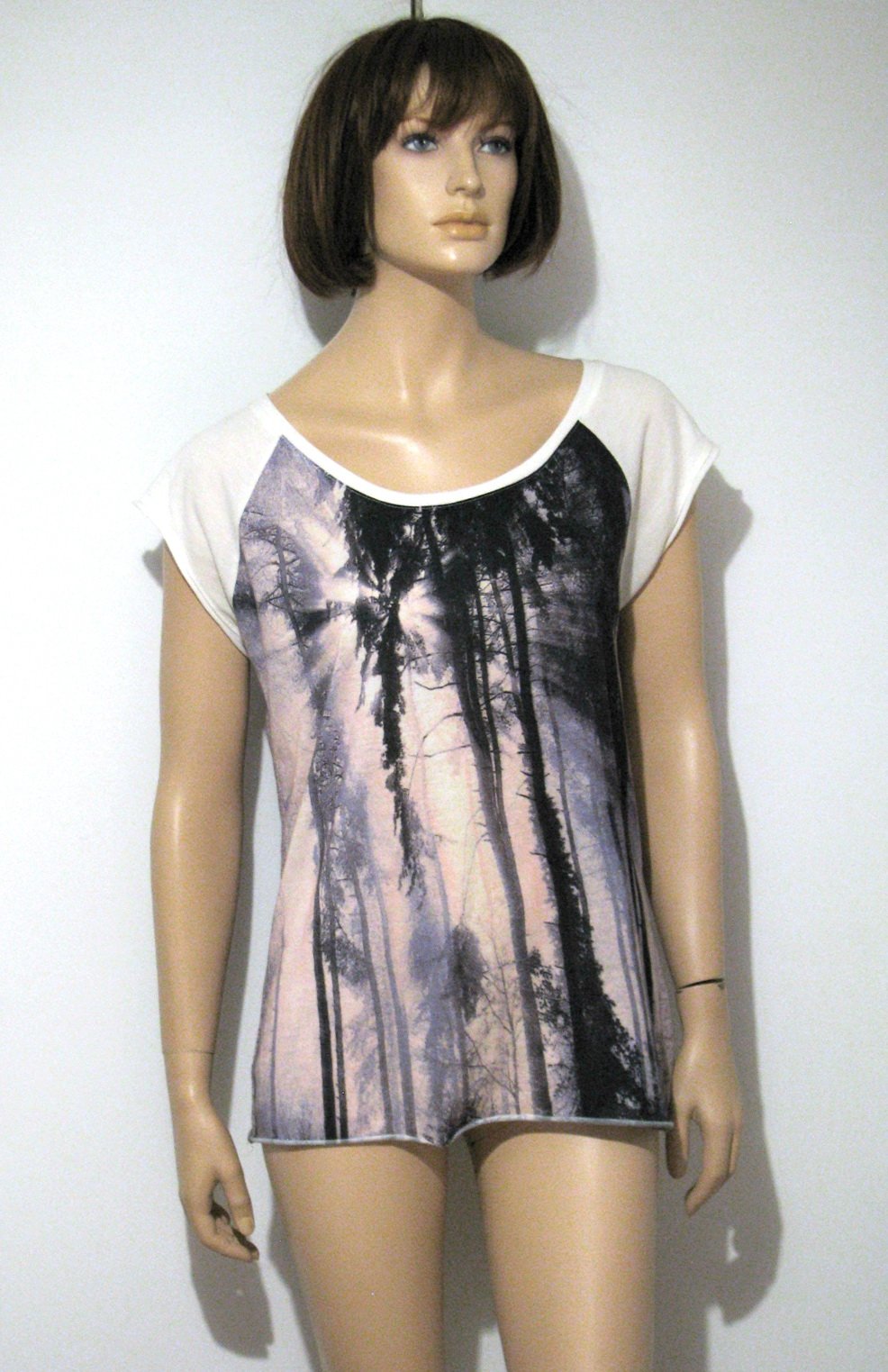 Tričko s peknou potlačou lesa - stromov v prenikajúcich lúčoch slnka - na prednom dieli. Zadný diel je strakatý bordovo-biely, biele rukávy. Tričko je nosené, no stále pekné, má pár žmolkov na zadnom dieli v oblasti bokov, odžmolkovač by odstránil. Žmolky sú tiež z vnútornej strany trička, viď. foto. Ďalšie poškodenia nemá. Materiál odhadujem na polyester, možno čiastočne s prímesou bavlny. Štítok s materiálom chýba. Veľkosť píše XL - 42, no podľa mňa skôr na L, M a ako oversize pokojne aj na menšie. V prípade záujmu premeriam.