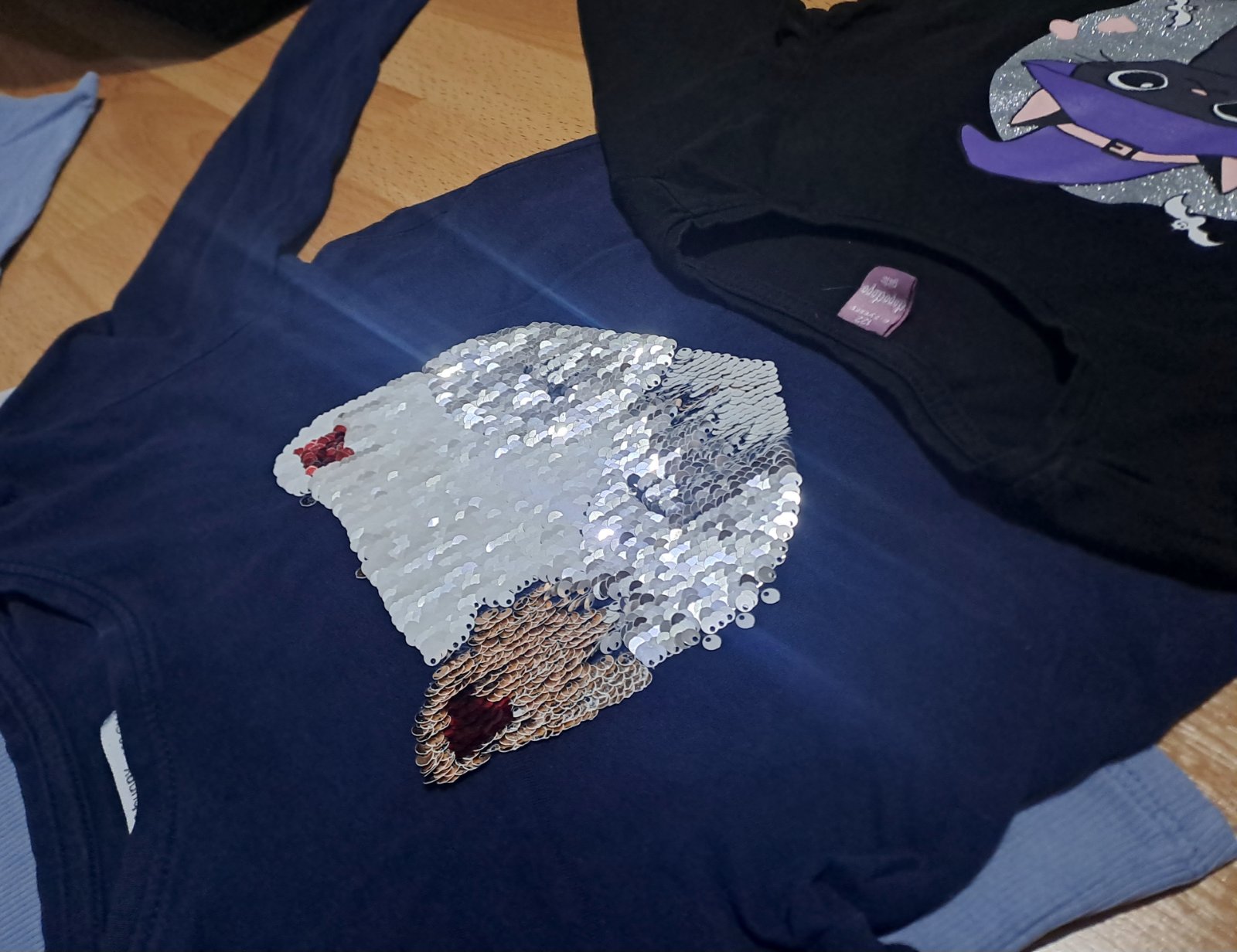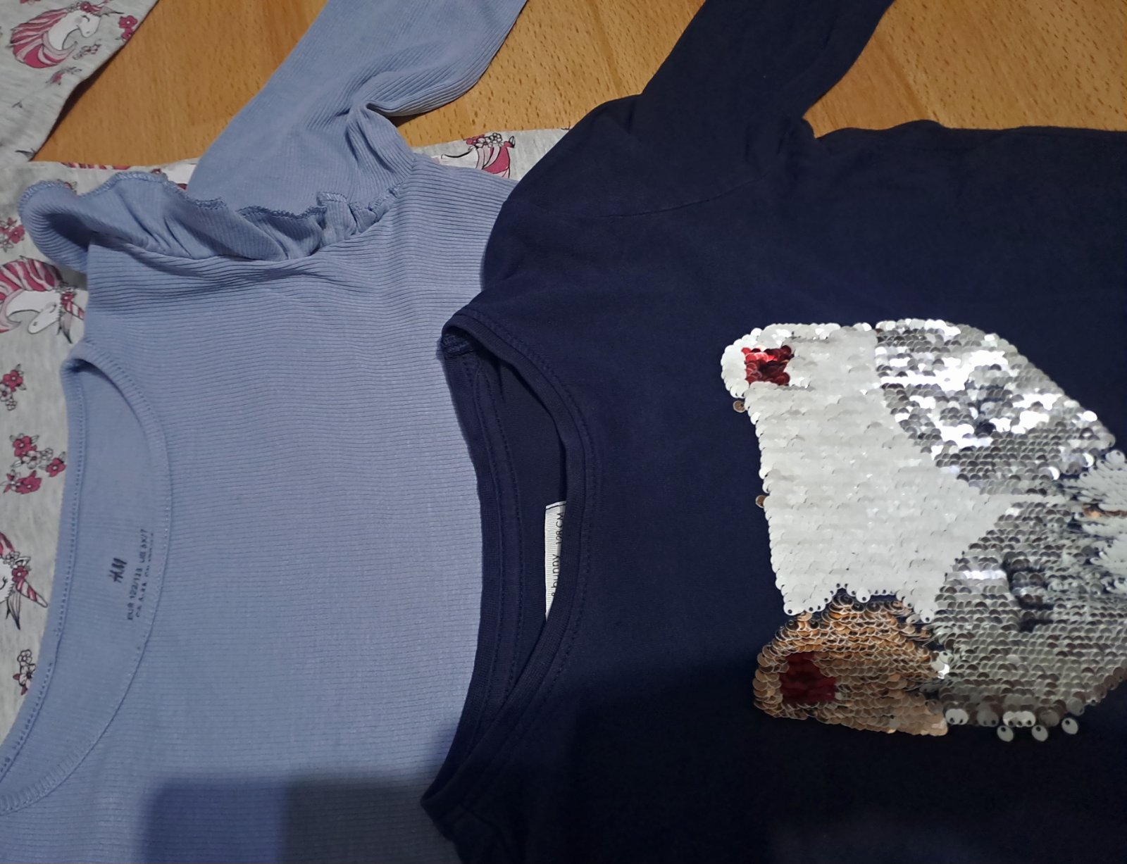 5x prvé dve a heloween kocur nenosené. Alebo nátelník. Len spolu to predávam prosim nie po kusoch. Nemaju zmolky maju dobry material modre ma vlnky na ramenach to je vrubkované z hmka. Maju trblietky a jeden s flitrami