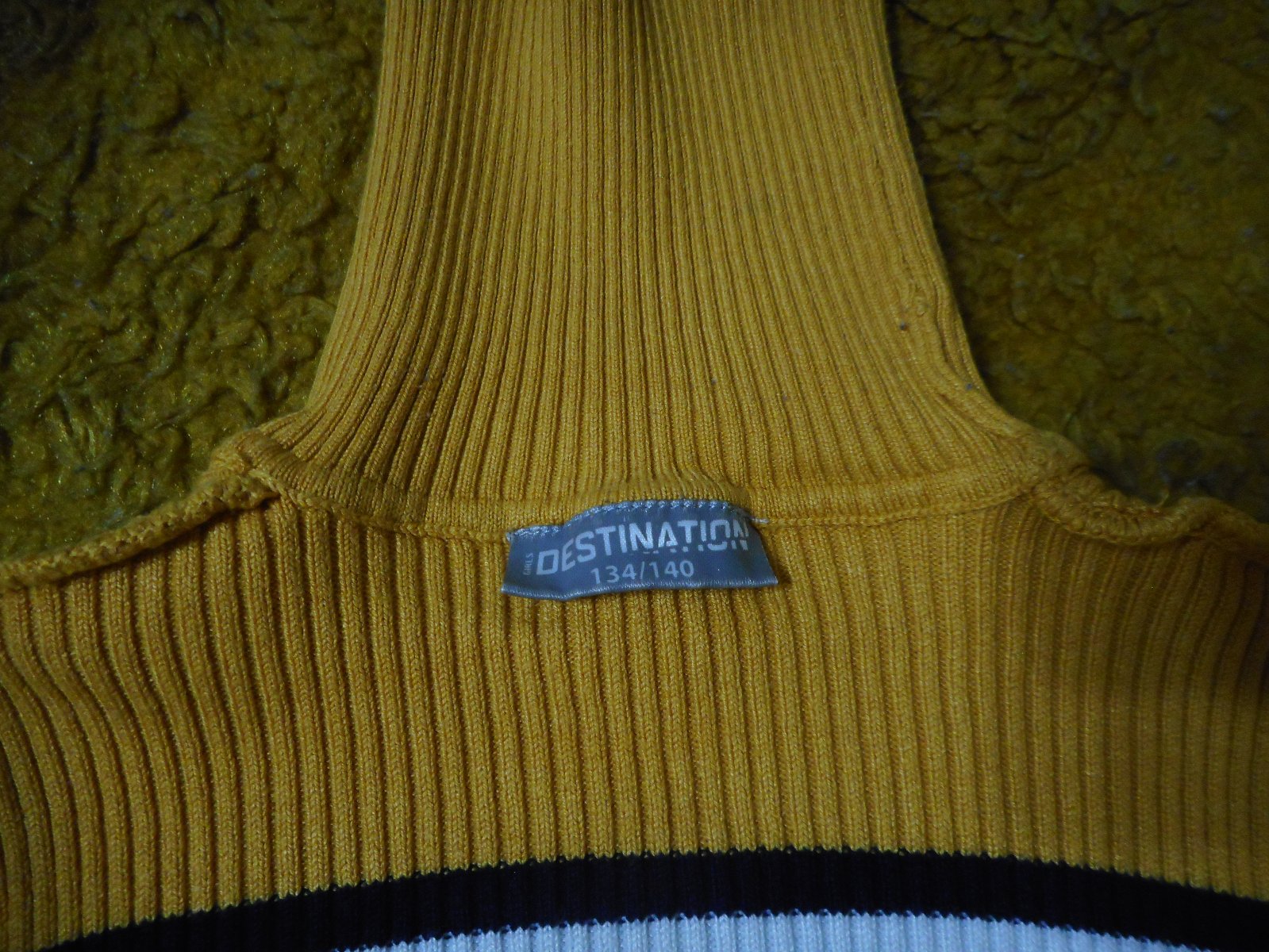predám používaný nepoškodený pekný pružný rebrovaný dievčenský krok topový roláčik zn. Destination veľkosť 134/140cm s dlhým rukávom kombinácia farieb včielka horčicová, čierna biela, celková dĺžka roláku je 42cm, vonkajšia dĺžka rukávu od šitia ramena je 48cm, vnútorná 38cm
