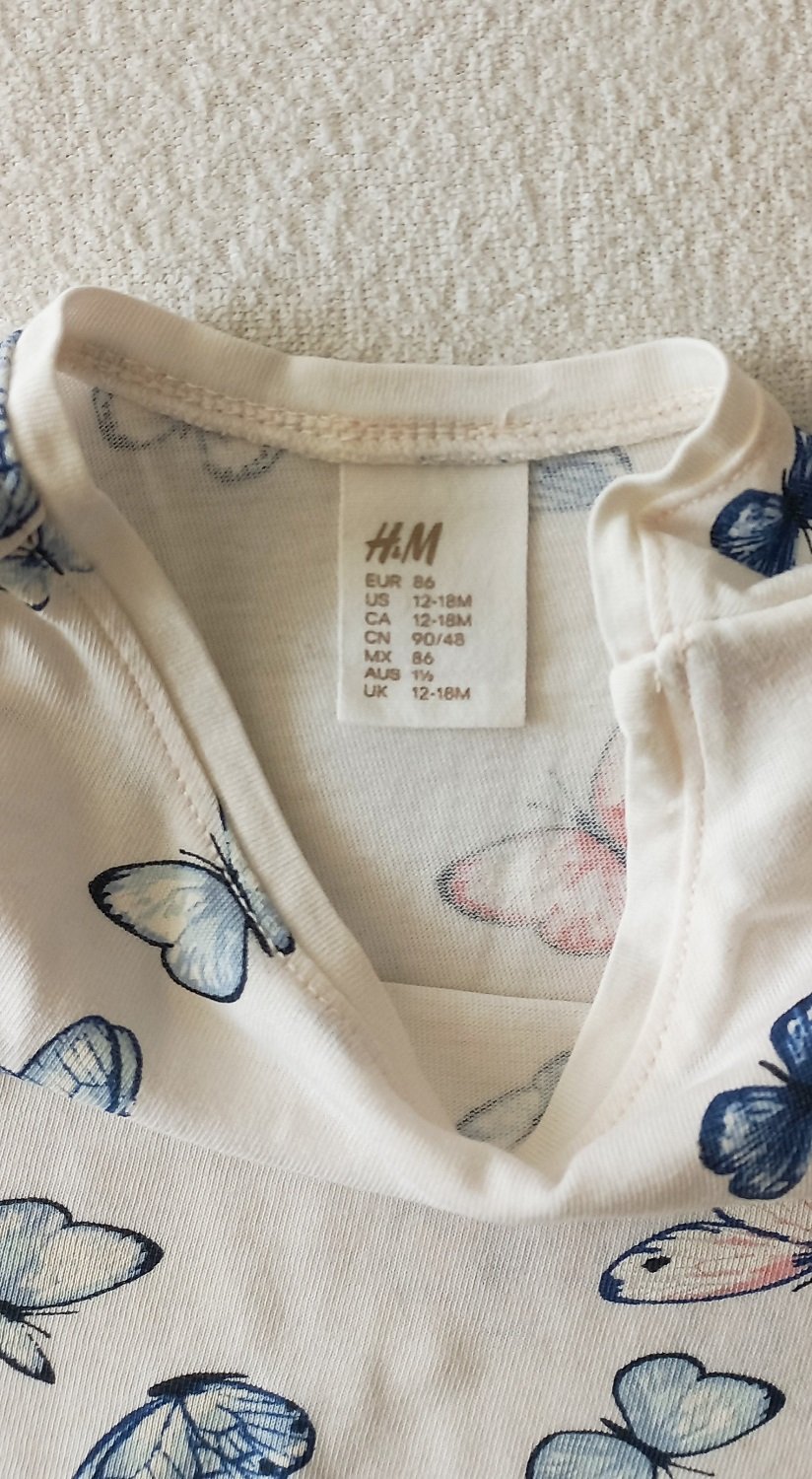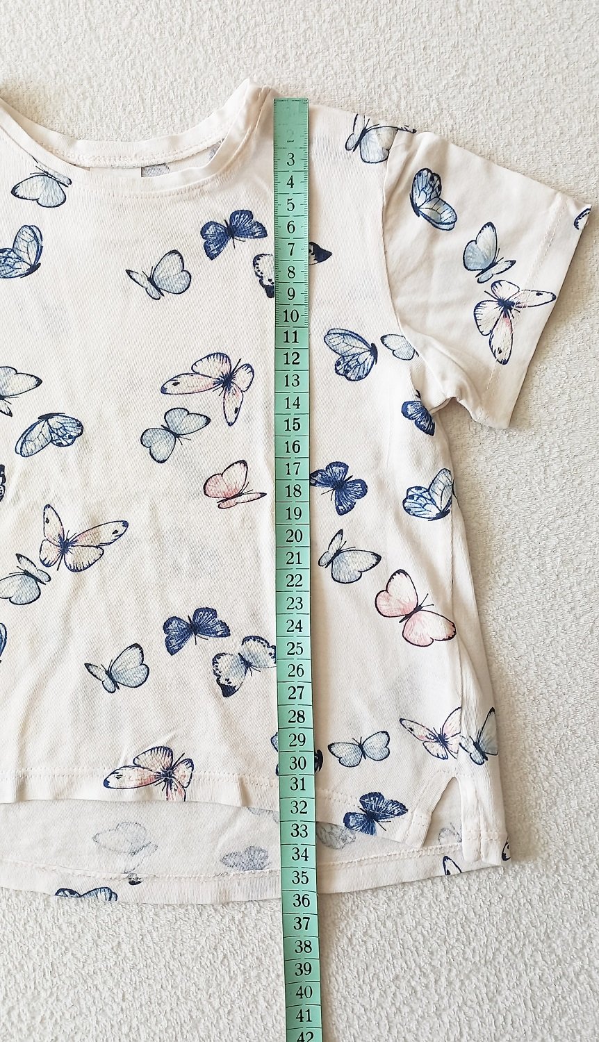 Letné tričko s motýlikmi, značka H&M, veľkosť 92. Rozmery sú na fotkách, 100% bavlna. Zapínanie na pliecku na jeden cvok, nosené, vidieť nosenie, bez fľakov a dier. Máme viacero detských vecí, môžete si zostaviť vlastný balíček. Pri kúpe viac vecí zľava, alebo poštovné uhradím ja.
