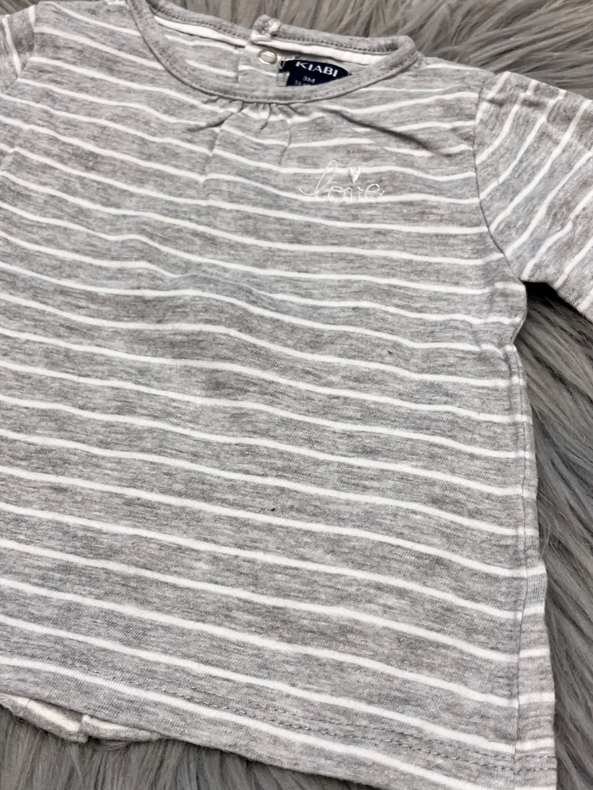 Dievčenské pásikavé tričko sivo biele Kiabi (56)